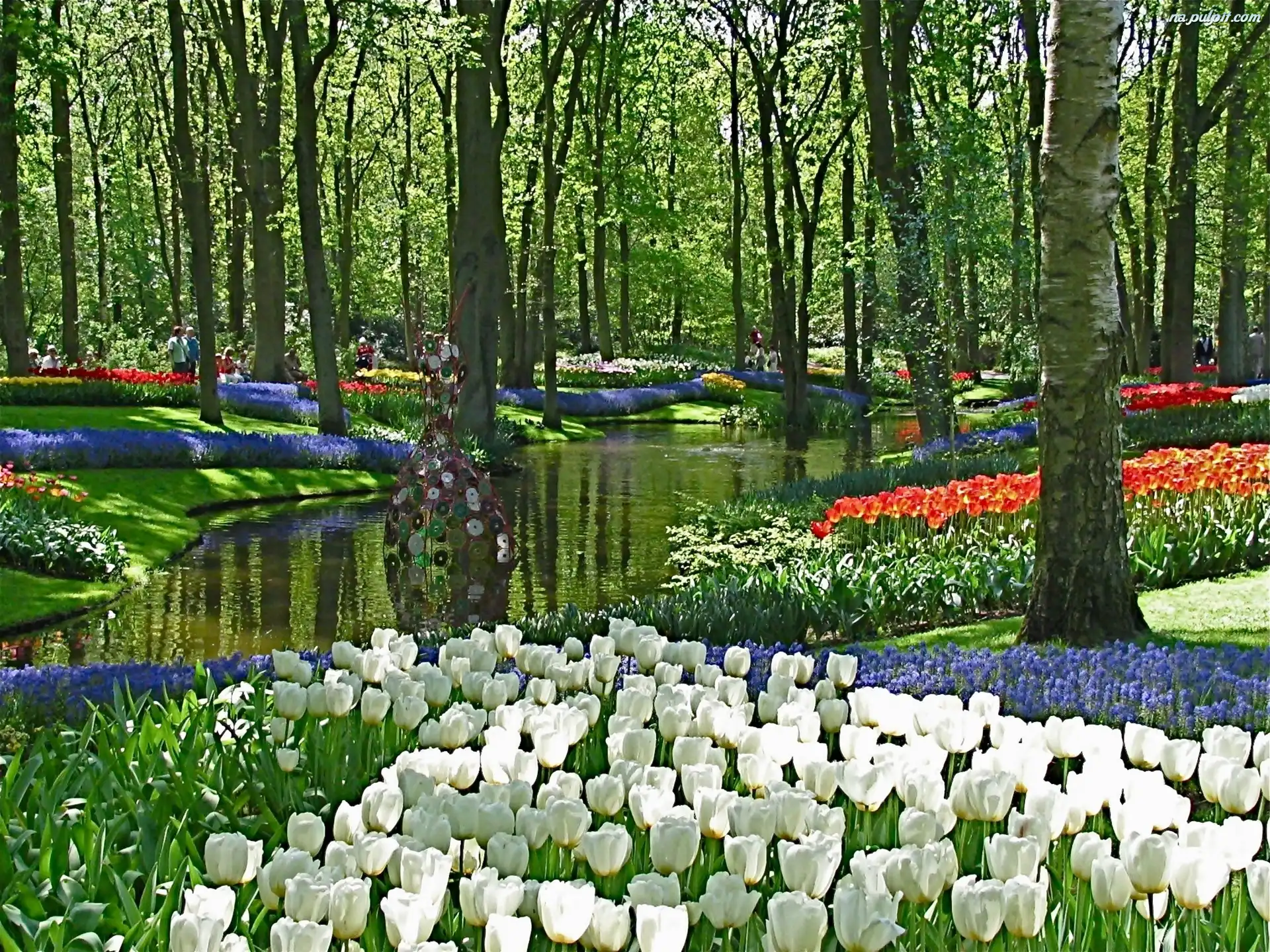 Park, Kwiatowe, Spacerowicze, Rzeczka, Wiosna, Dywany Na Pulpit