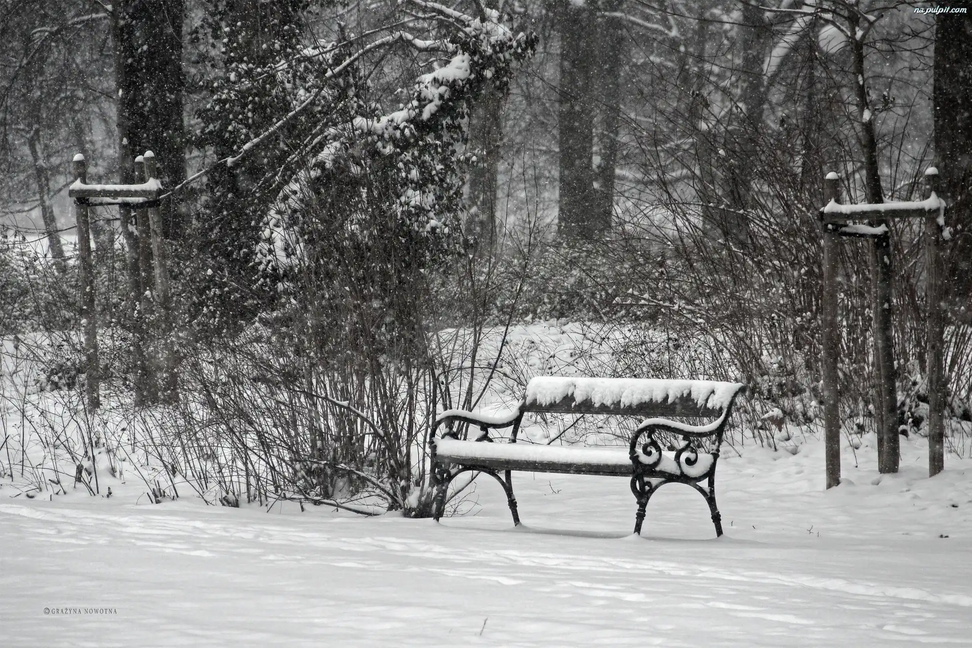 Park, Ławka, Zima, Śnieg