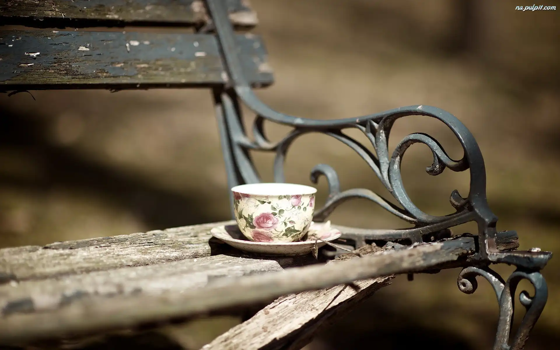 Parku, Ławka, Herbaty, Filiżanka, W Na Pulpit