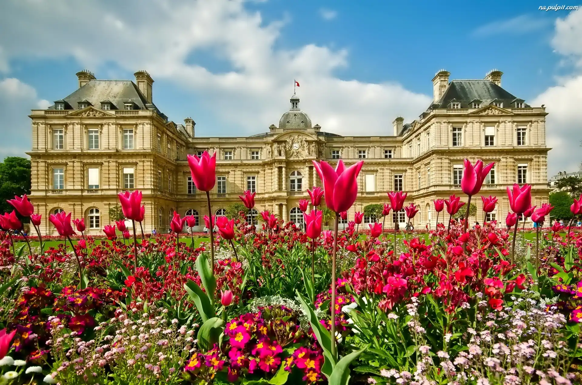 Paryż, Ogród, Luksemburski, Pałac, Kwiaty