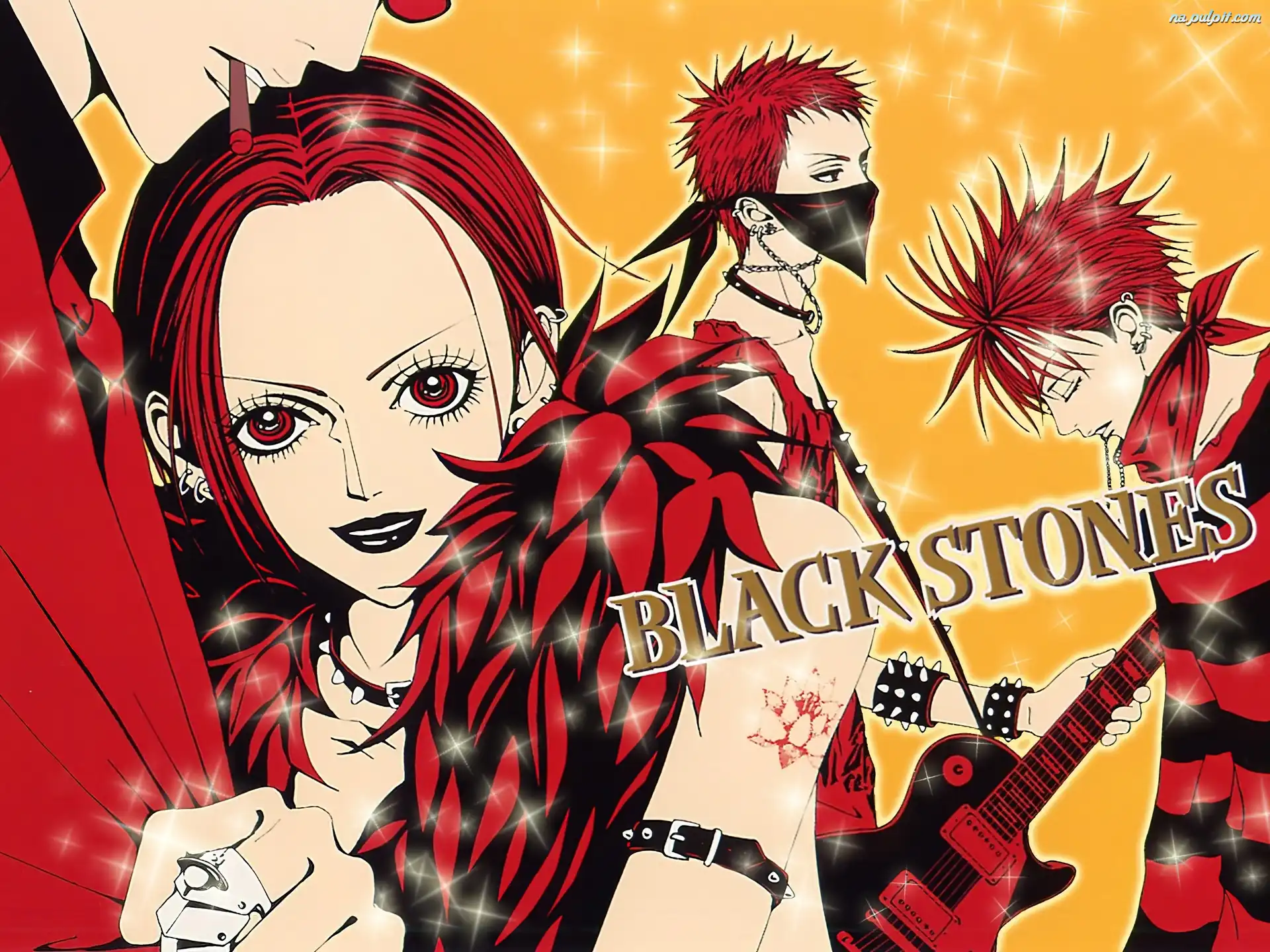 Nana, Hachi instrument, Nana, marynarka latarnia, Nana, budynek kolczyki, Nana, kolorowy tatuaż Nana, Anime pierścień, Nana, gitara rękawiczki, Nana, kozaki oczy, Nana, torebka golf, Nana, duże oczy żółte bolerko, Nana, czerwona obroża pasek, Nana, czerwone włosy dziewczyny, Nana, anime ciemne włosy, Nana, profil twarzy pałeczki, Nana, okulary