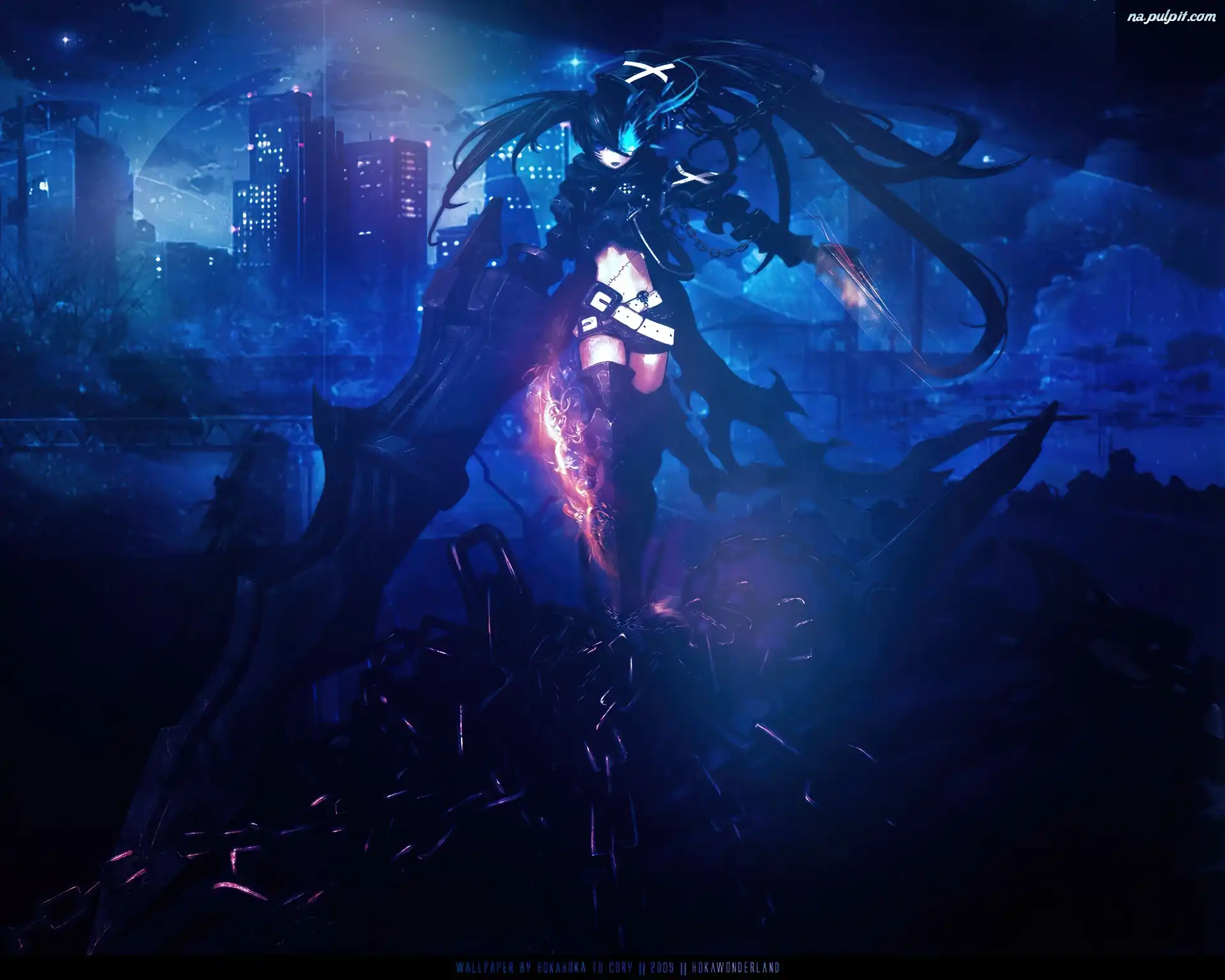 Black Rock Shooter, Księżyc Black Rock Shooter Pasek, Łańcuchy, Black Rock Shooter, Wieżowce Black Rock Shooter, Szachownica Dziewczyny, Black Rock Shooter, Pistolety Black Rock Shooter, Łańcuch, Miecz Black Rock Shooter, Miecz Black Rock Shooter, Manga Black Rock Shooter, Cmentarz Płaszczyk, Spodenki, Black Rock Shooter, Stanik Black Rock Shooter Zespół, Black Rock Shooter Black Rock Shooter Black Rock Shooter, Dziewczynka