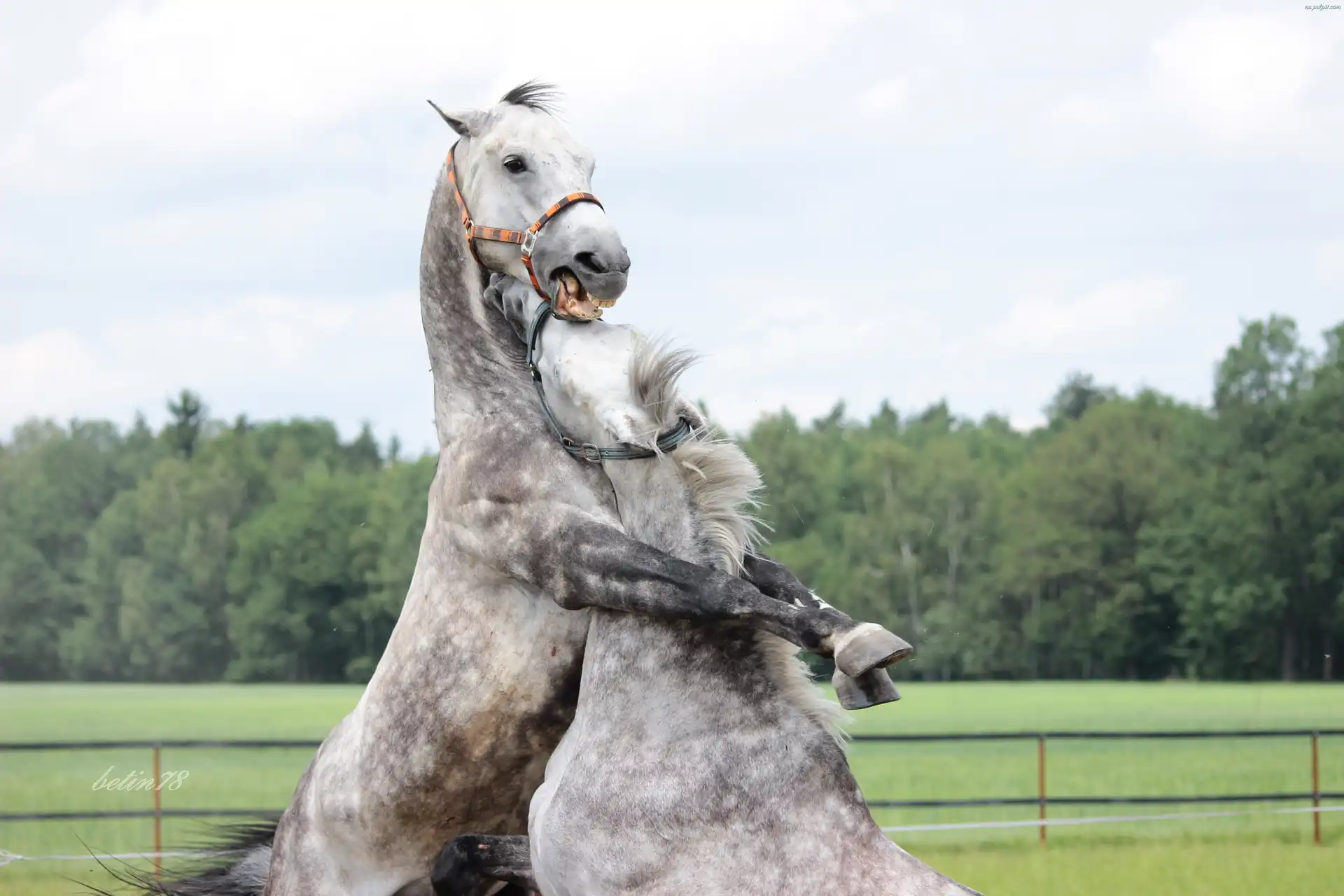 Pastwisko, Siwe, Konie, Walka