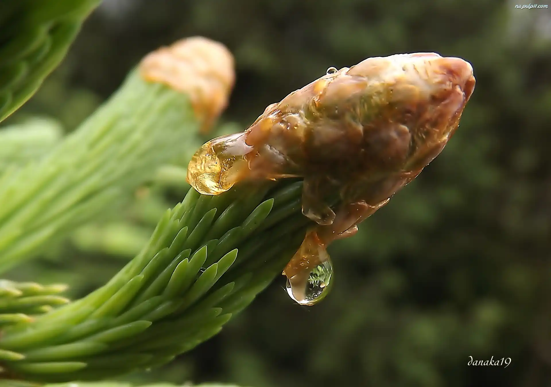 Pędy, Deszczu, Makro, Świerku, Młode, Krople Na Pulpit