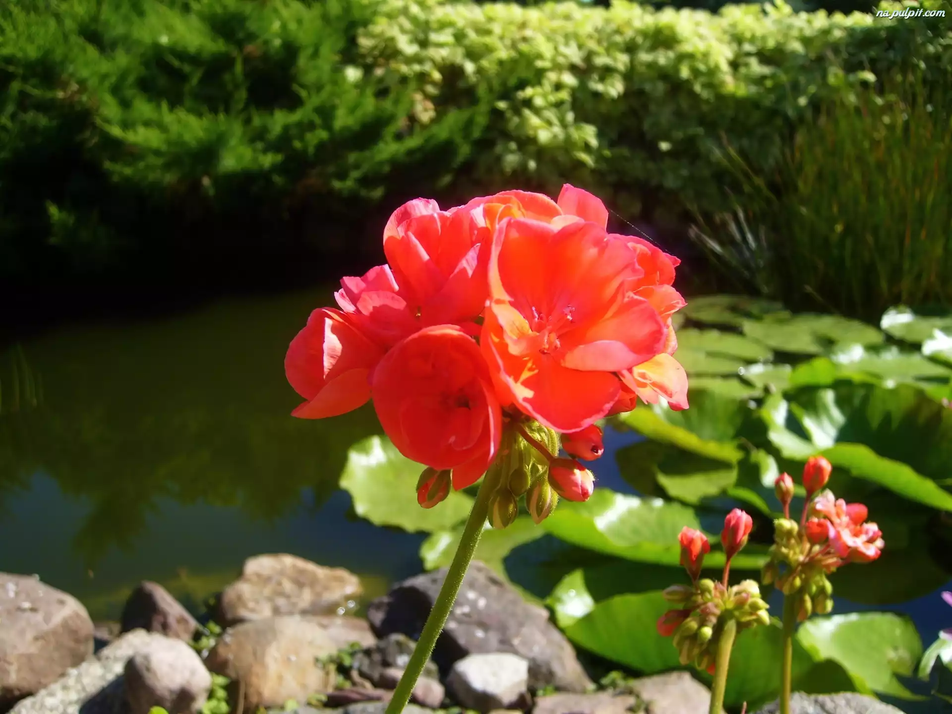 Czerwona, Pelargonia, Sadzawka