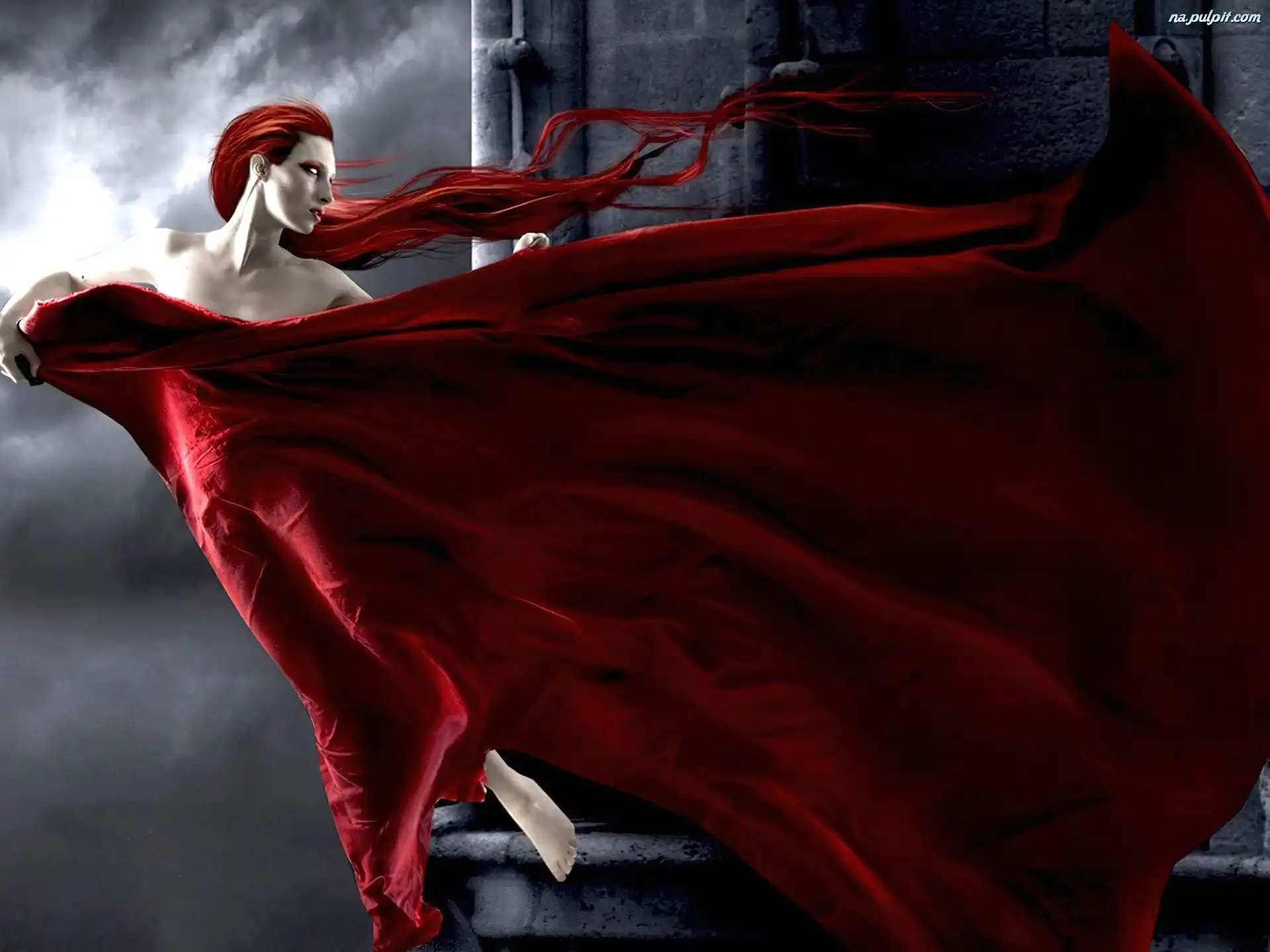 Peleryna, Czerwone, Kobieta, Włosy Na Pulpit