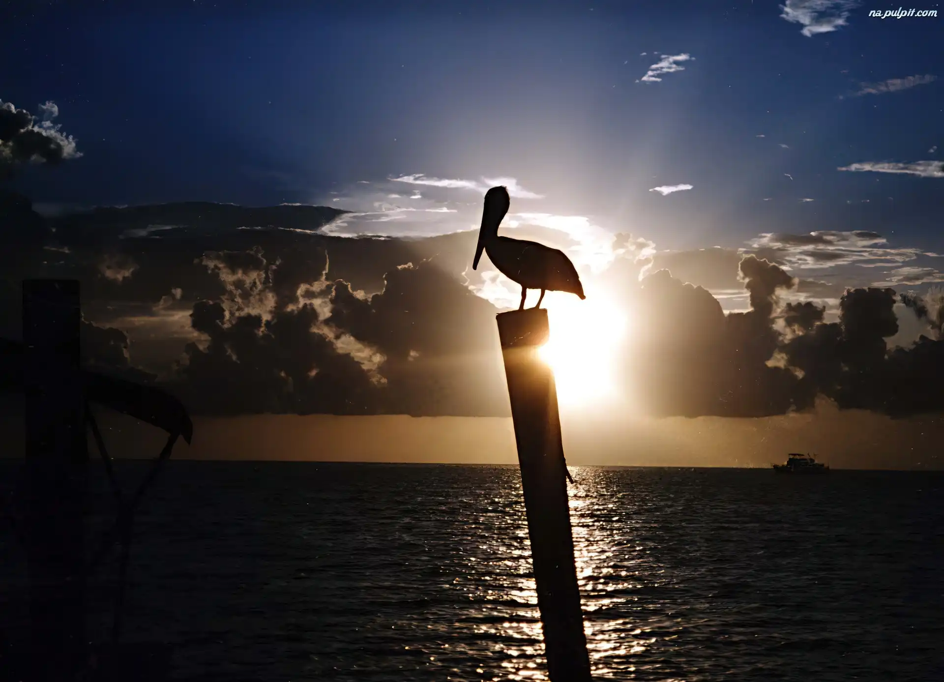 Pelikan, Słońca, Zachód, Morze Na Pulpit