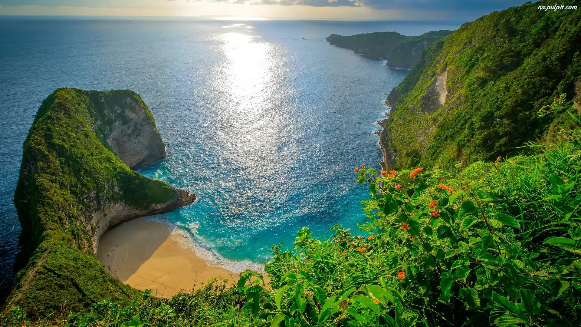 Wyspa Nusa Penida, Wybrzeże, Skały, Prowincja Bali, Indonezja, Plaża, Morze, Roślinność Na Pulpit