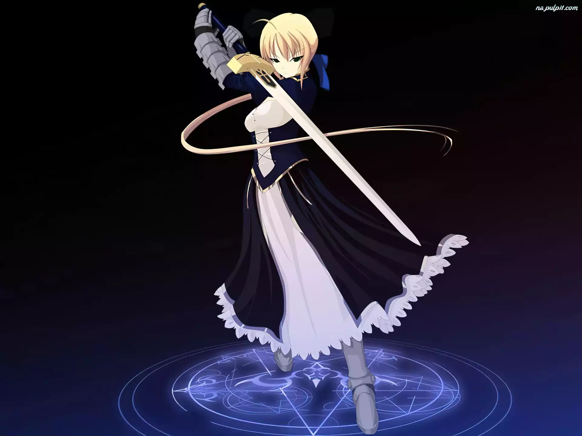 Fate Stay Night, kobieta, miecz, pentagram Na Pulpit