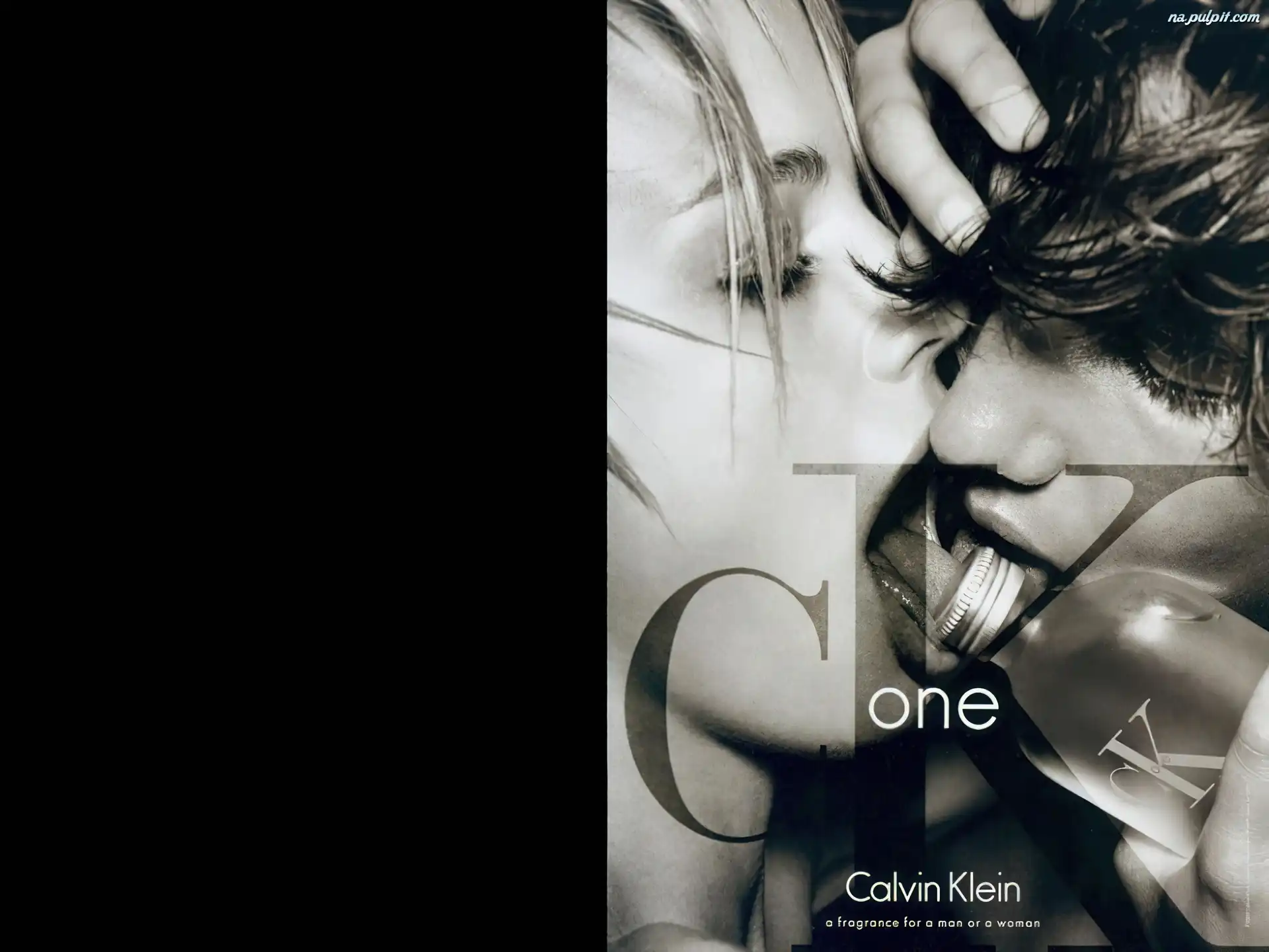 kobieta, ck, flakon, mężczyzna, pocałunek, one, Calvin Klein, perfum Na Pulpit