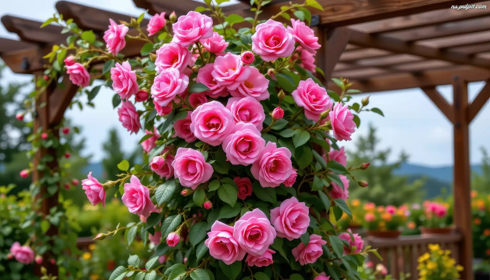 Grafika, Róże, Kwiaty, Pergola, Pnące, AI Na Pulpit