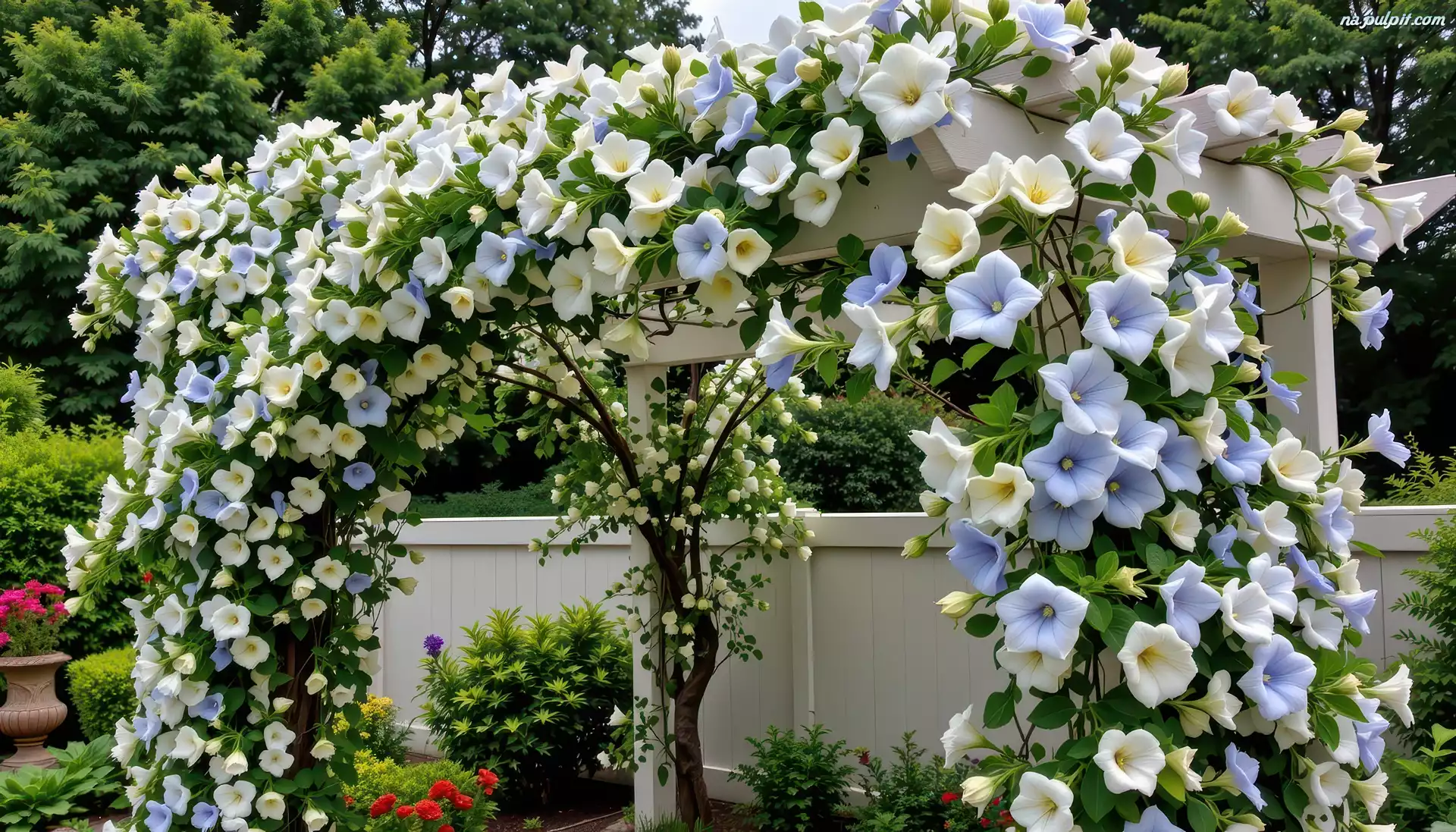 Kwiaty, Pergola, Płot, Grafika AI Na Pulpit