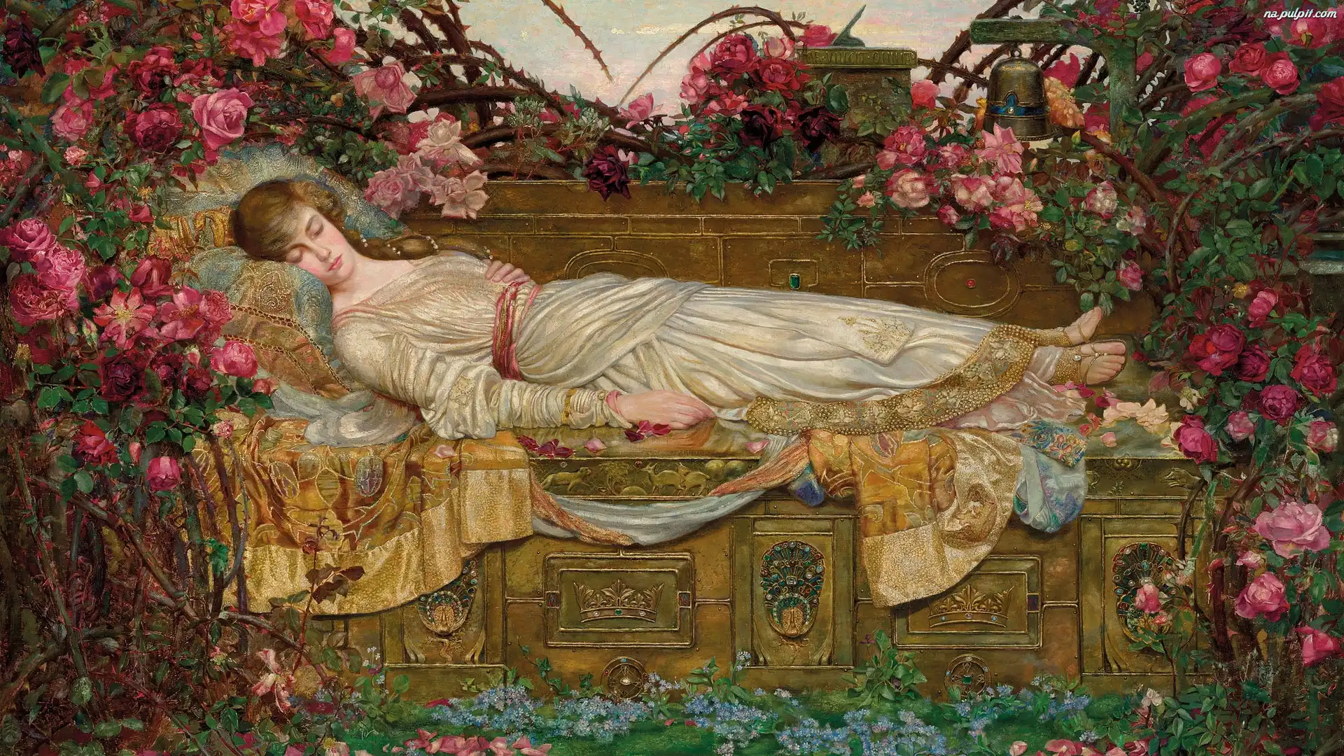 Obraz, Śpiąca, Kobieta, Archibald Wakley, Malarstwo, Ogród Na Pulpit