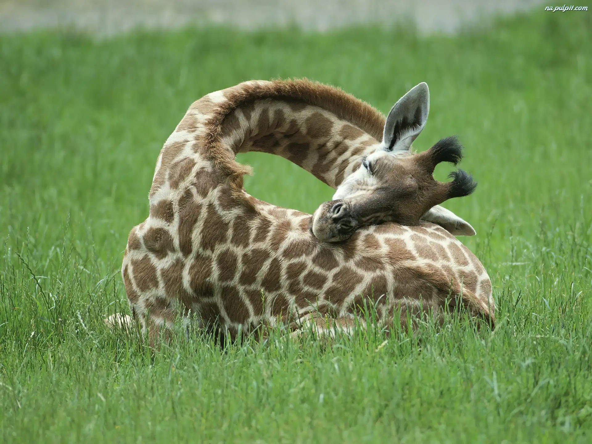 Żyrafa, Śpiąca, Młoda Na Pulpit