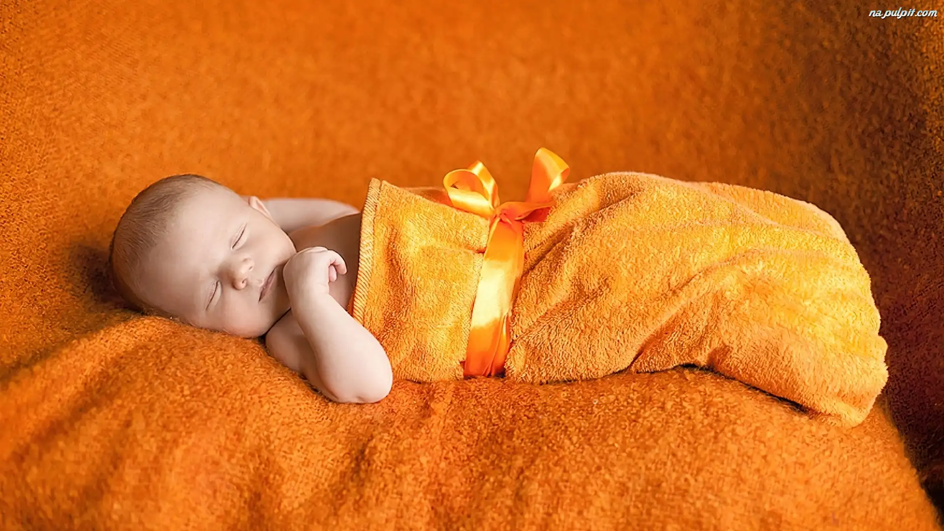 Śpiące, Frotta, Wstążka, Dziecko, Małe, Pomarańczowa Na Pulpit