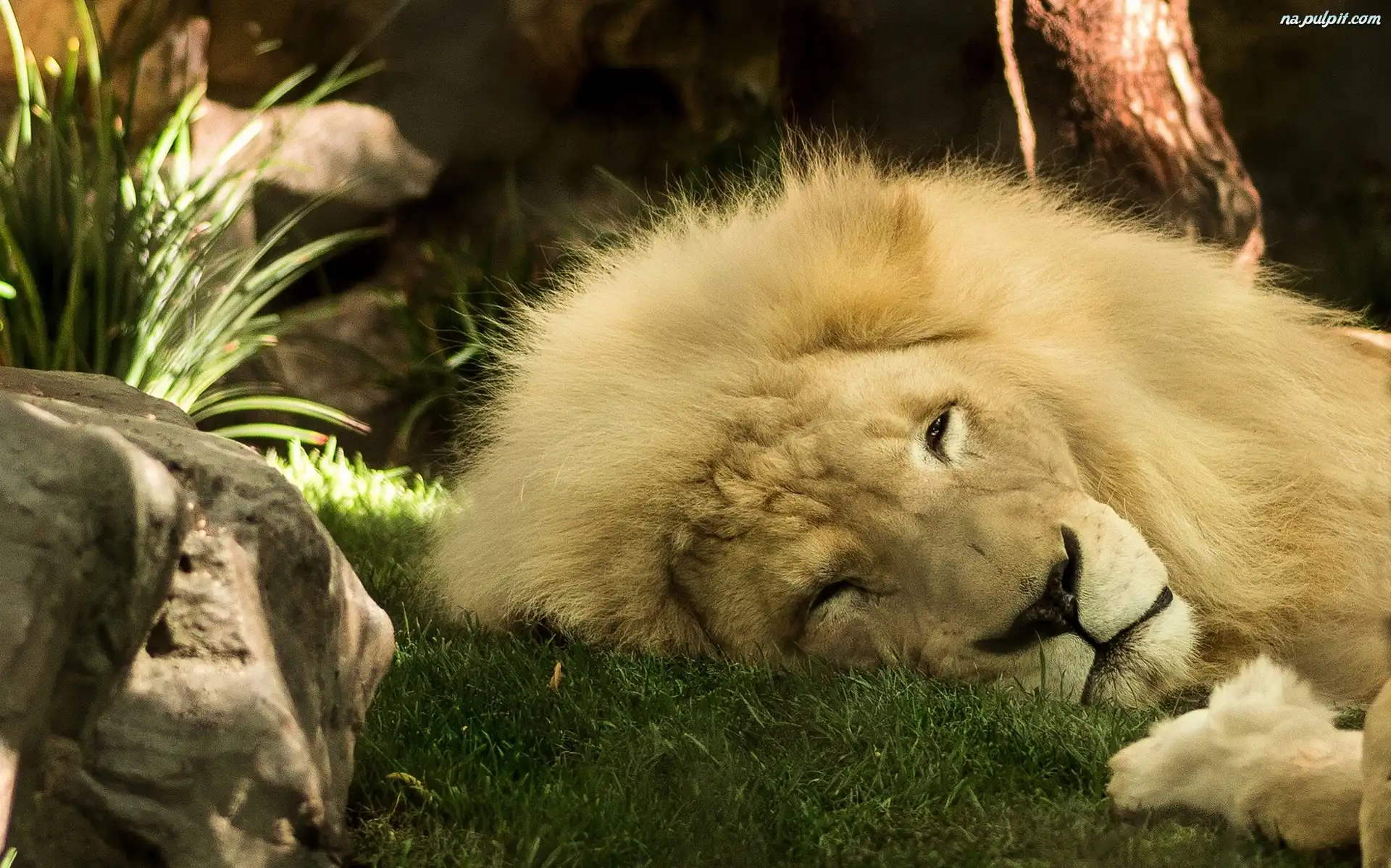 Lew, Głowa para, Lew, lwica Wody, Trawa, Krople Lwiątko na drzewie Wody, Trawa, Krople Wody, Trawa, Krople Trawa, Słońca, Zachód, Chmury Trawa, Jeziora, Tafla, Zielona Ławka, Trawa, Drewniana Dwie, Lwice Dziewczynka, Śpiący, Lew Lwy Trawka, Zielona, Równa Małe Lwiątko