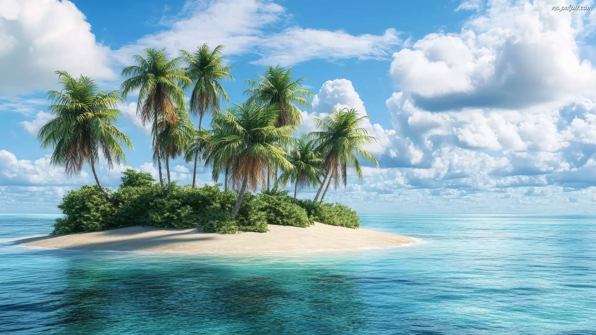 Palmy, Morze, Wysepka, Piasek, Wyspa, Chmury Na Pulpit