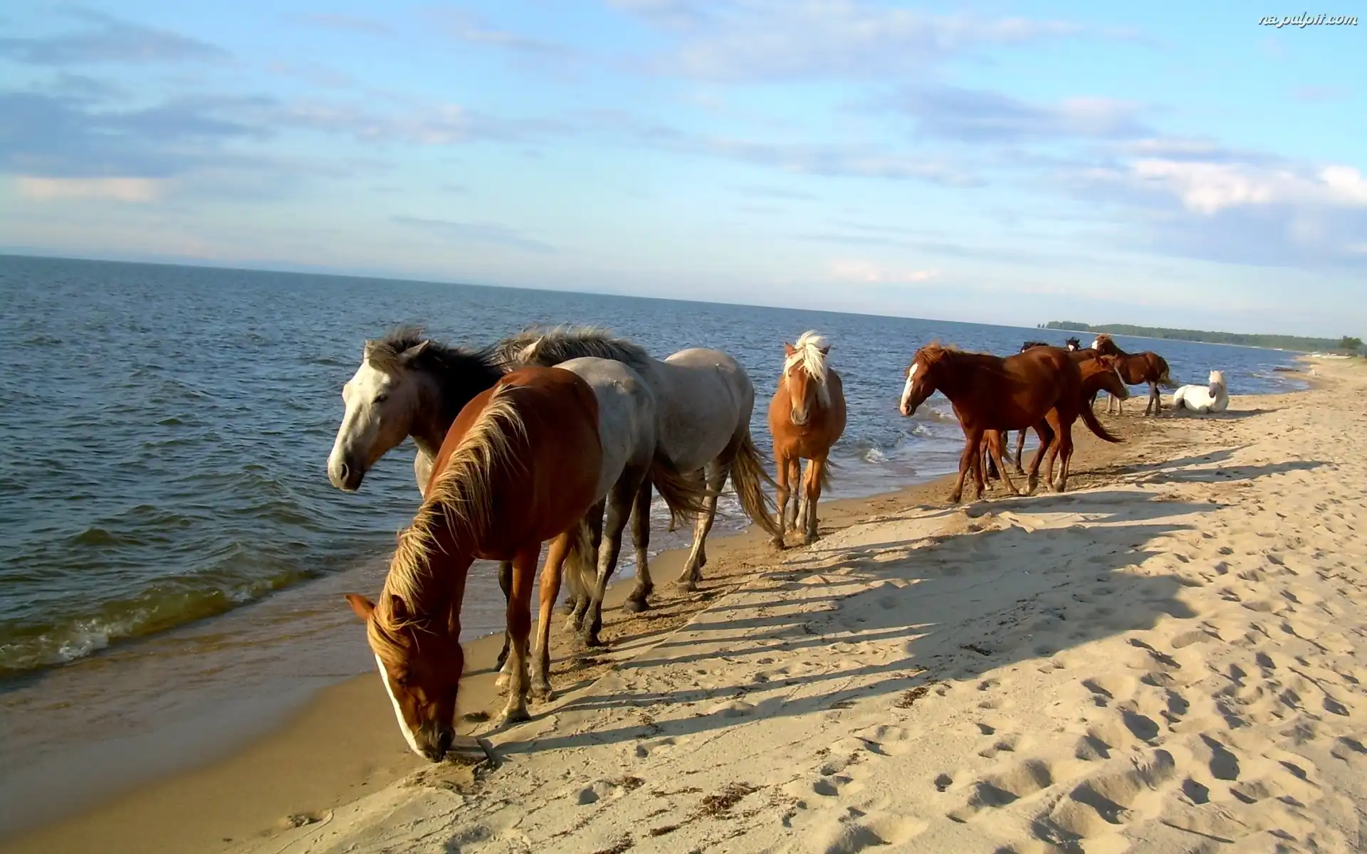 Piasek, Plaża, Konie, Morze Na Pulpit