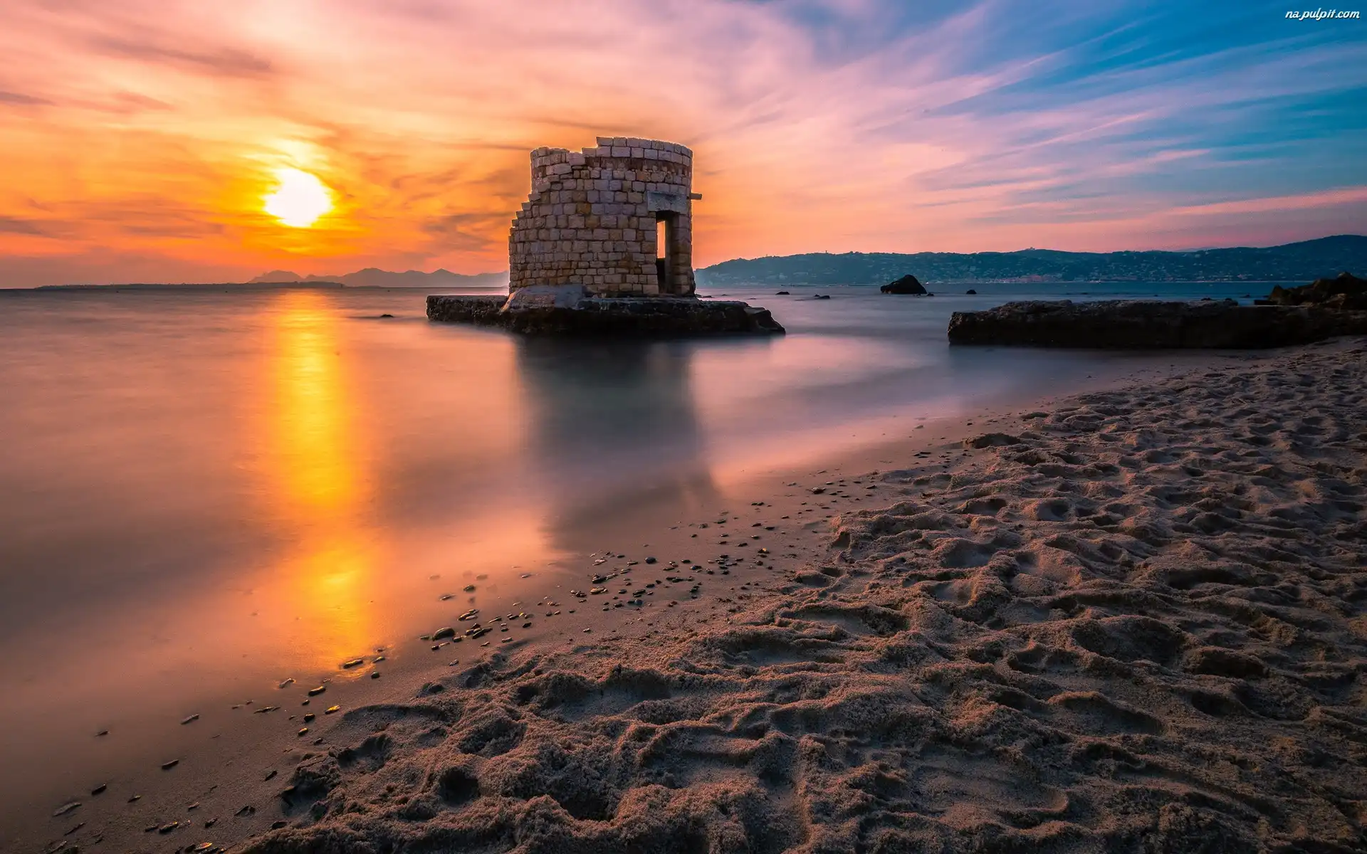 Piasek, Zachód słońca, Morze, Niebo Na Pulpit