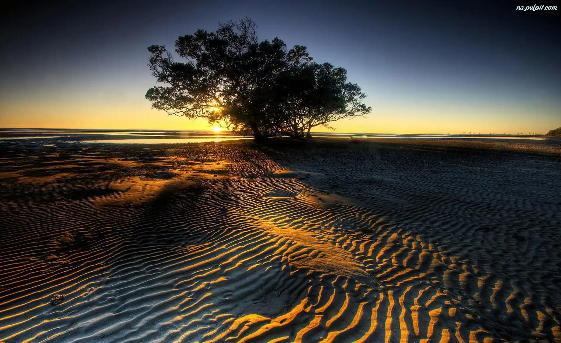 Piasek, Słońca, Zachód, Drzewo Na Pulpit