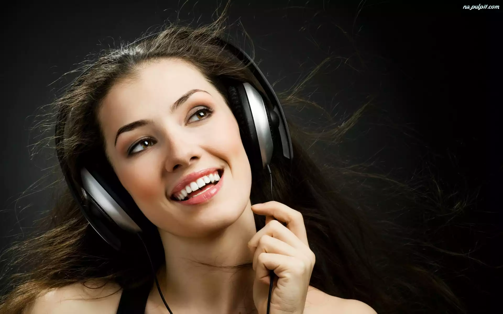 Słuchawki, Piękna, Brunetka Na Pulpit