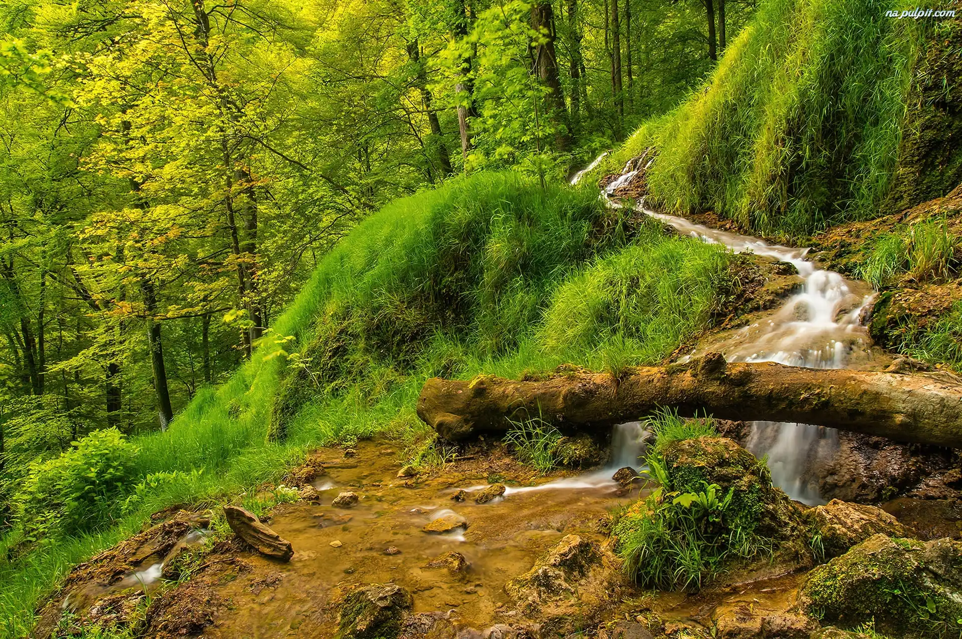 Pień, Las, Góry, Strumyk Na Pulpit