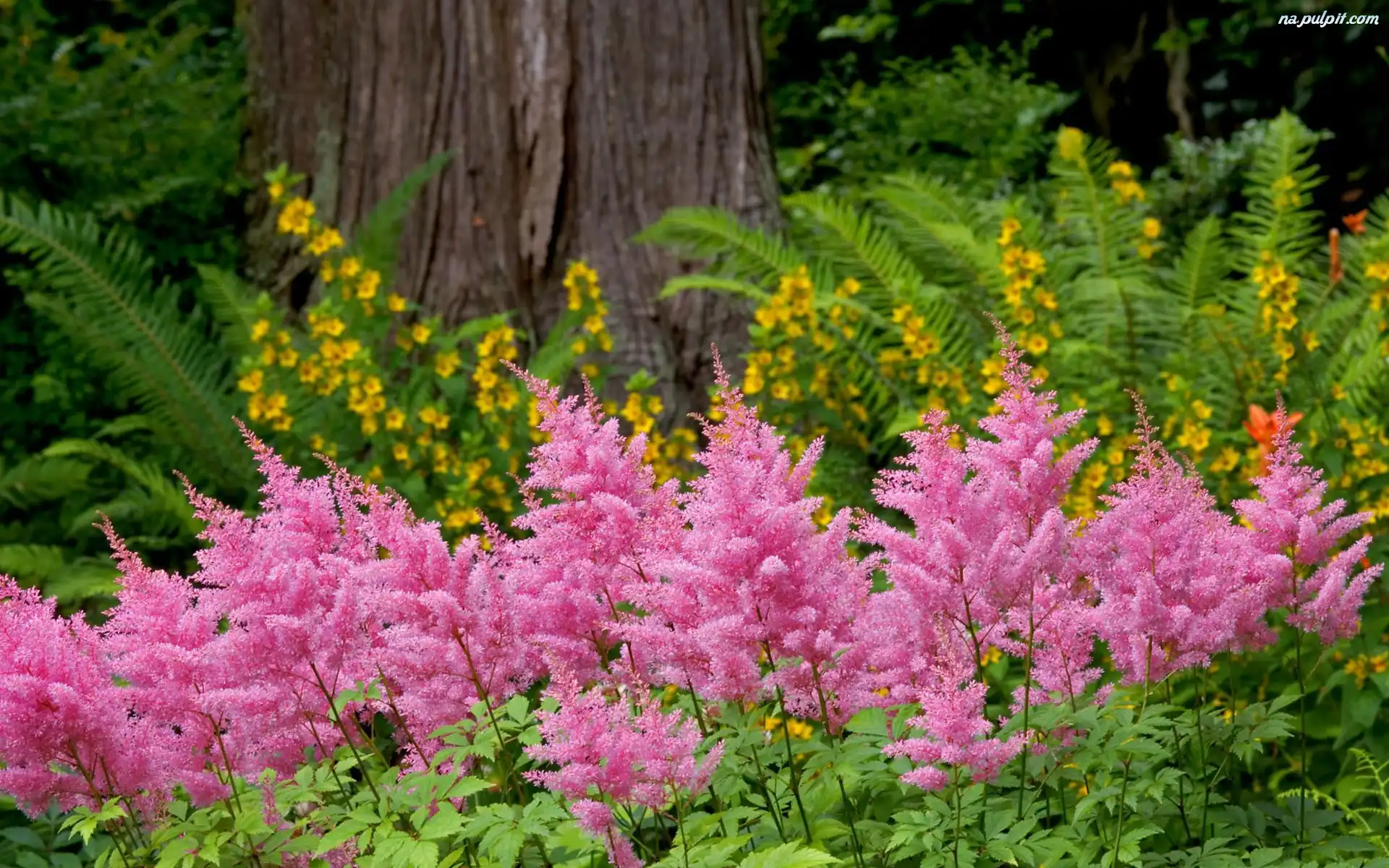 Pień, Kwiaty, Różowe, Paprocie Na Pulpit