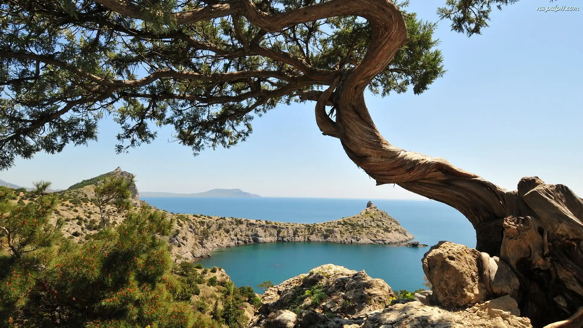 Pień, Morze, Skały, Skręcony Na Pulpit