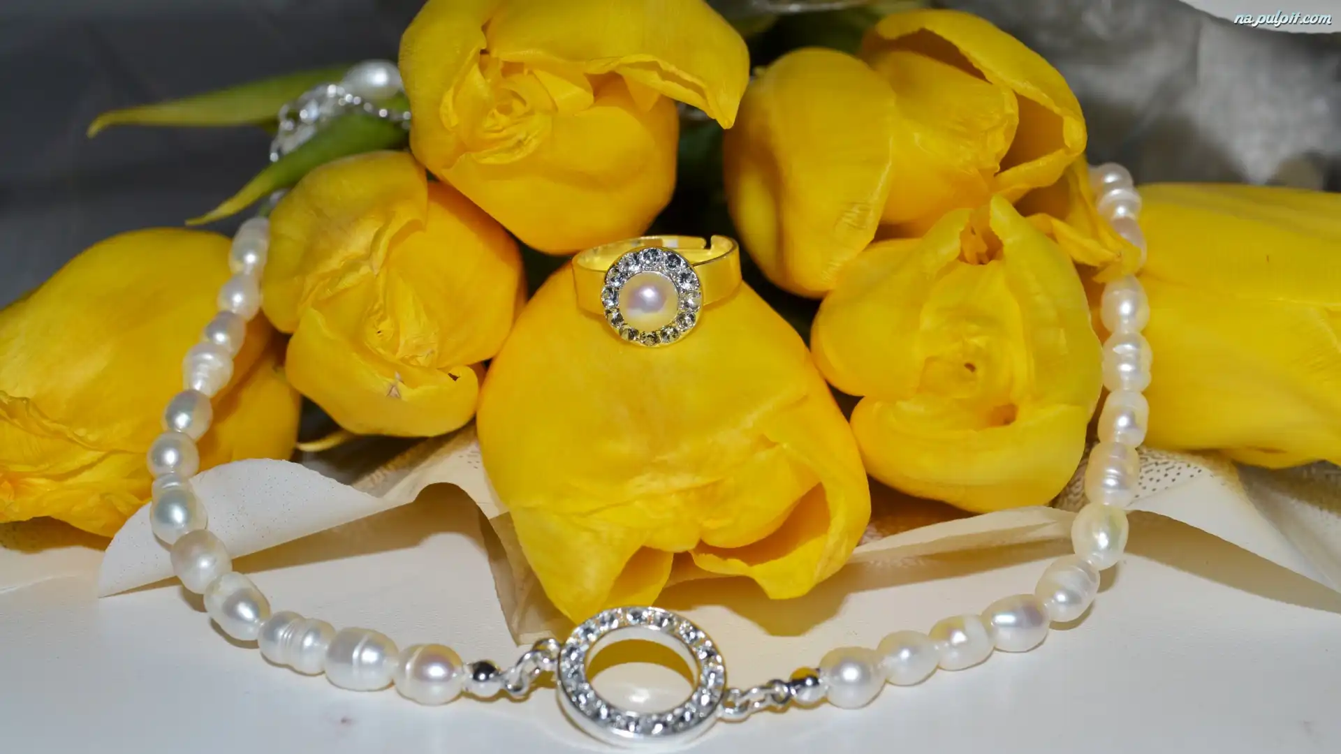 Pierścionek, Tulipany, Żółte, Perły Na Pulpit