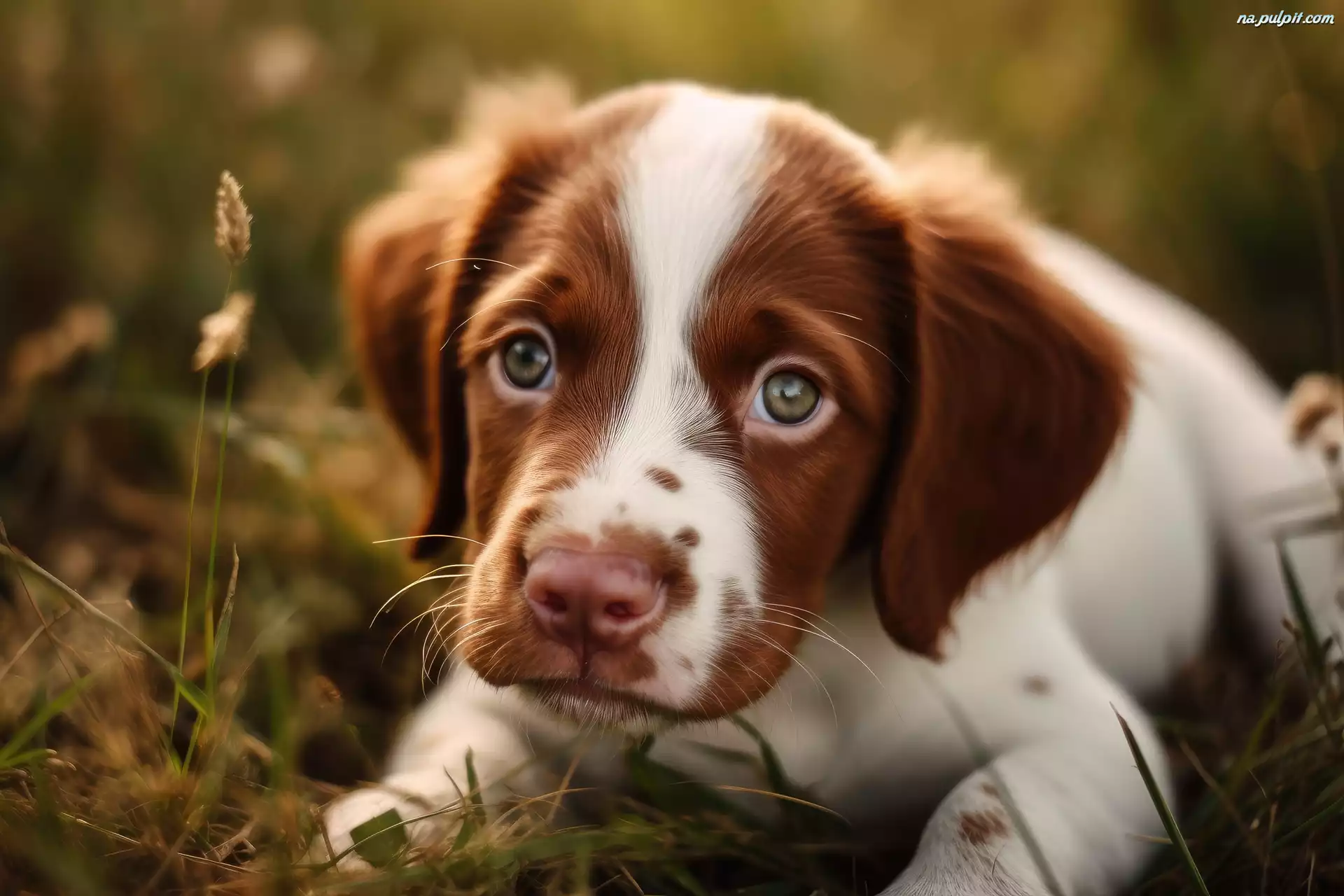 Biało-brązowy, Leżący, Pies Na Pulpit