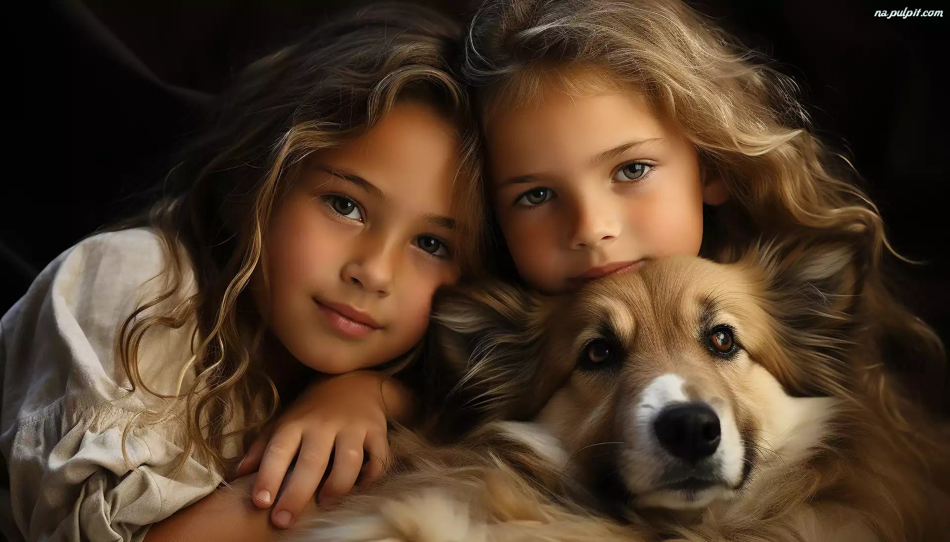 Dzieci, Dwie, Dziewczynki, Pies Na Pulpit