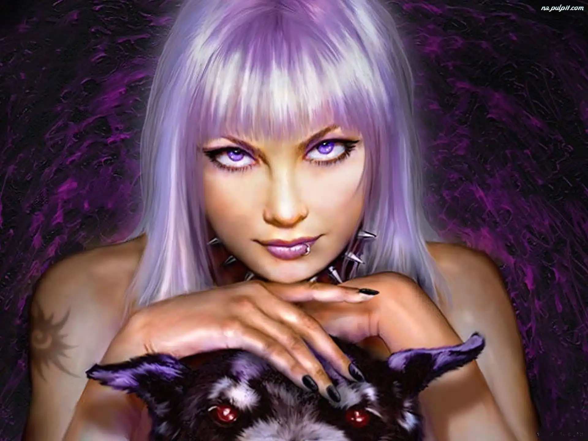 Pies, Włosy, Fioletowe, Dziewczyna, Oczy Na Pulpit