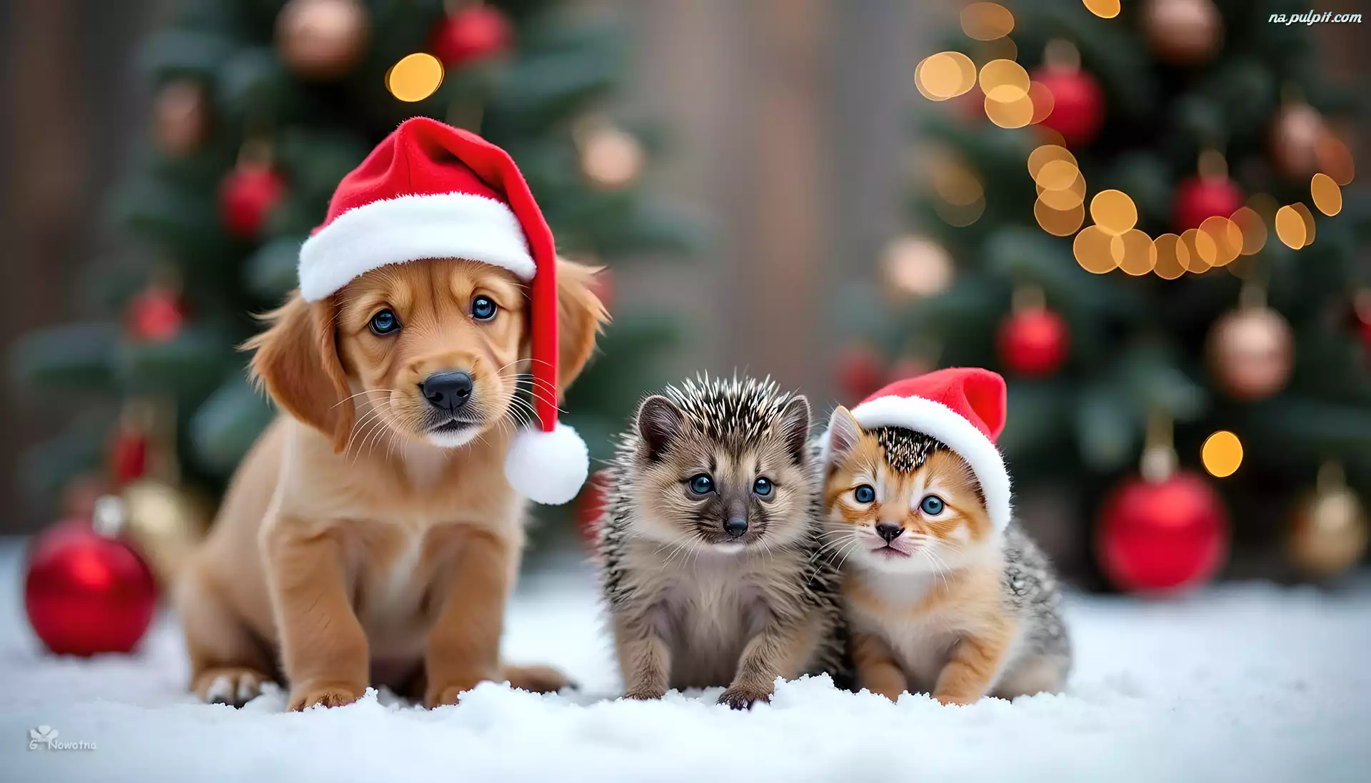 Grafika, Czapka, Kot, Pies, Szczeniak, Jeż, Mikołaja Na Pulpit
