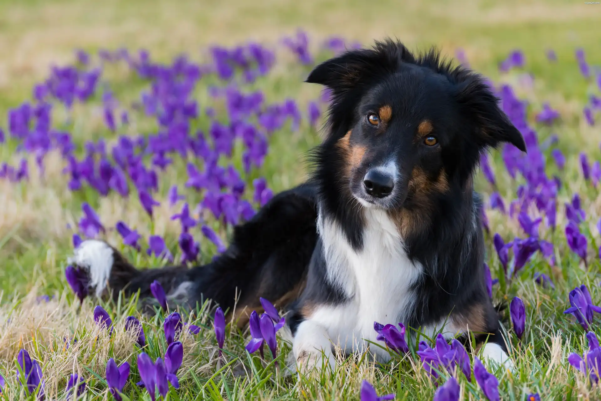 Krokusy, Pies, Łąka