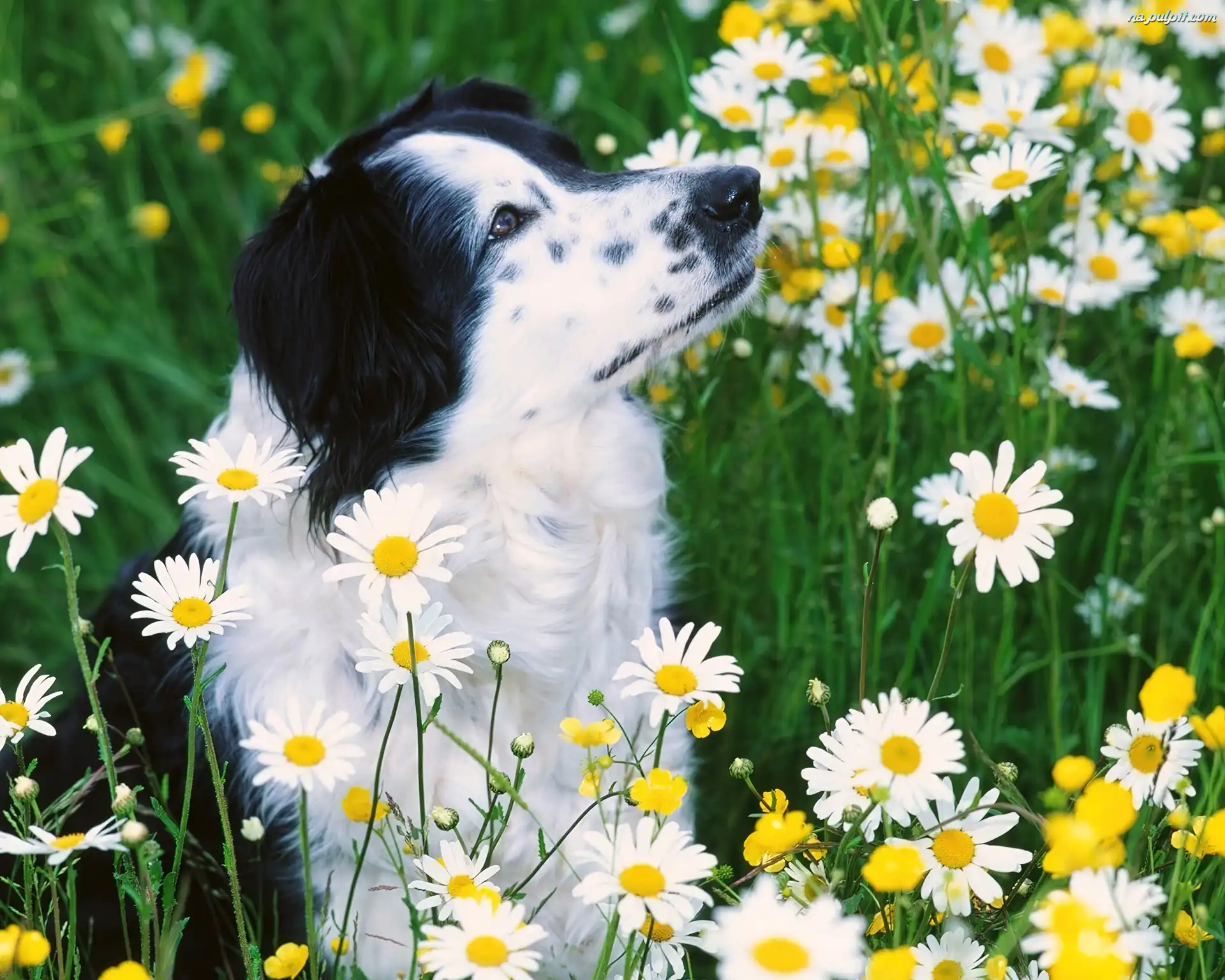 Kwiatki, Pies, Łąka Na Pulpit