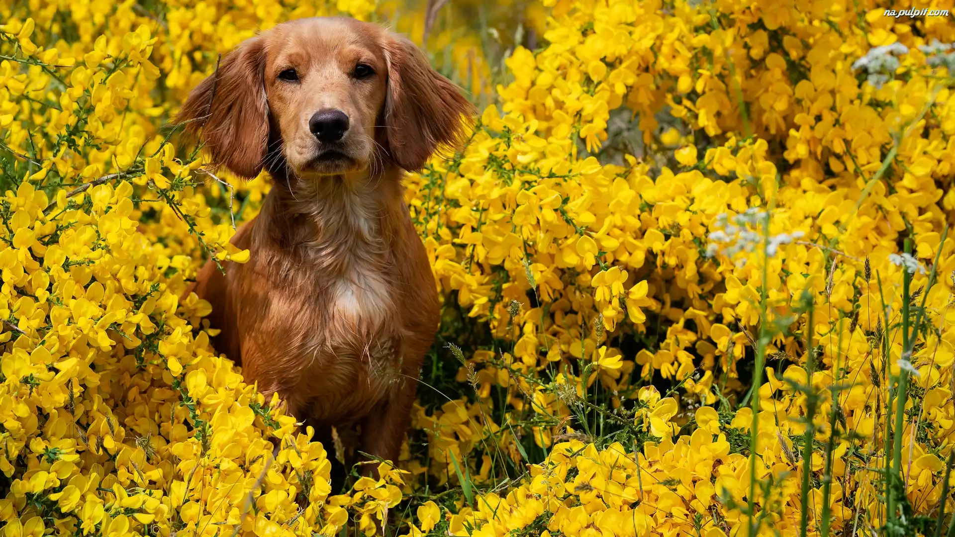 Kwiaty, Pies, Żółte