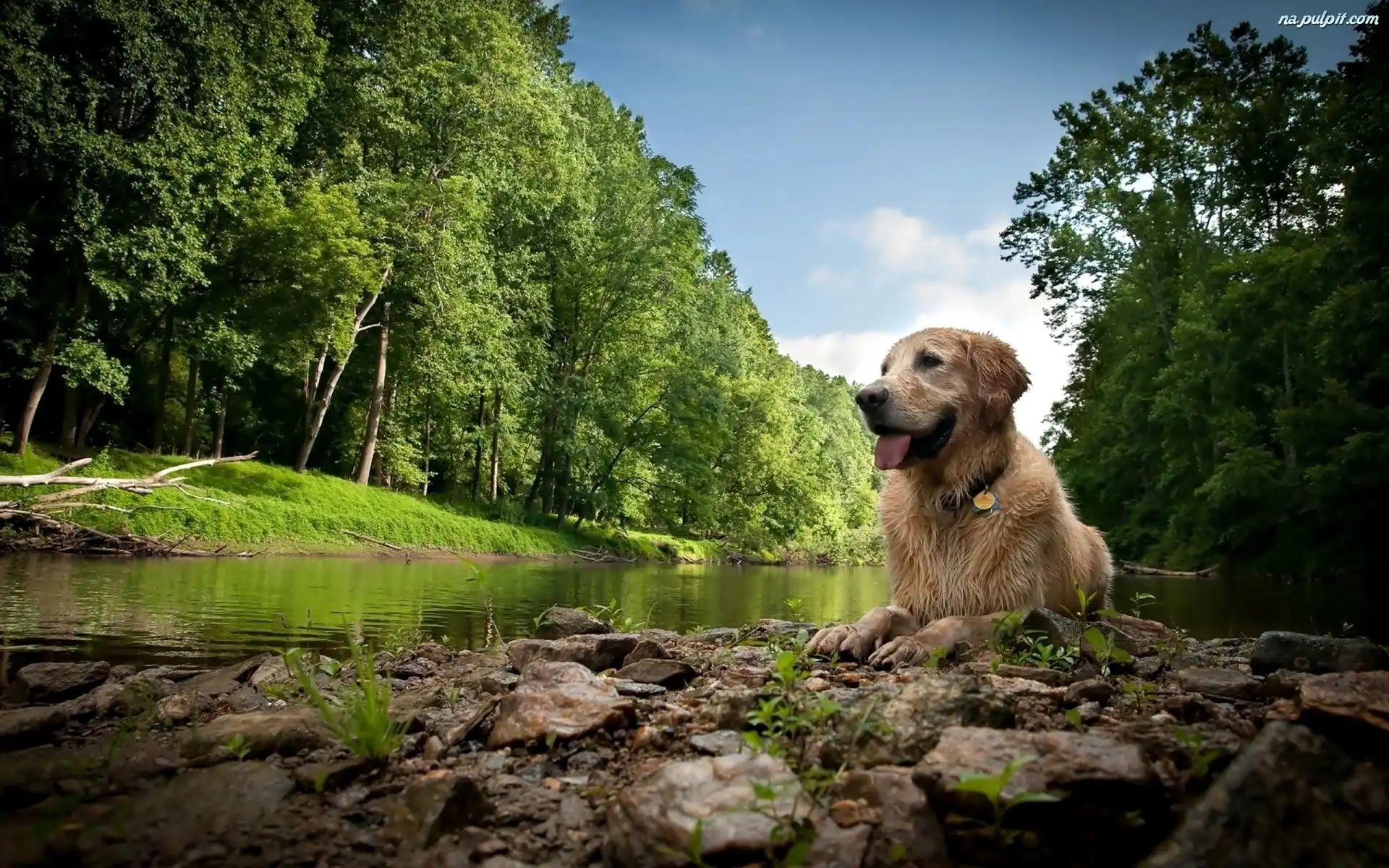 Las, Golden Retriever, Pies, Rzeka Na Pulpit
