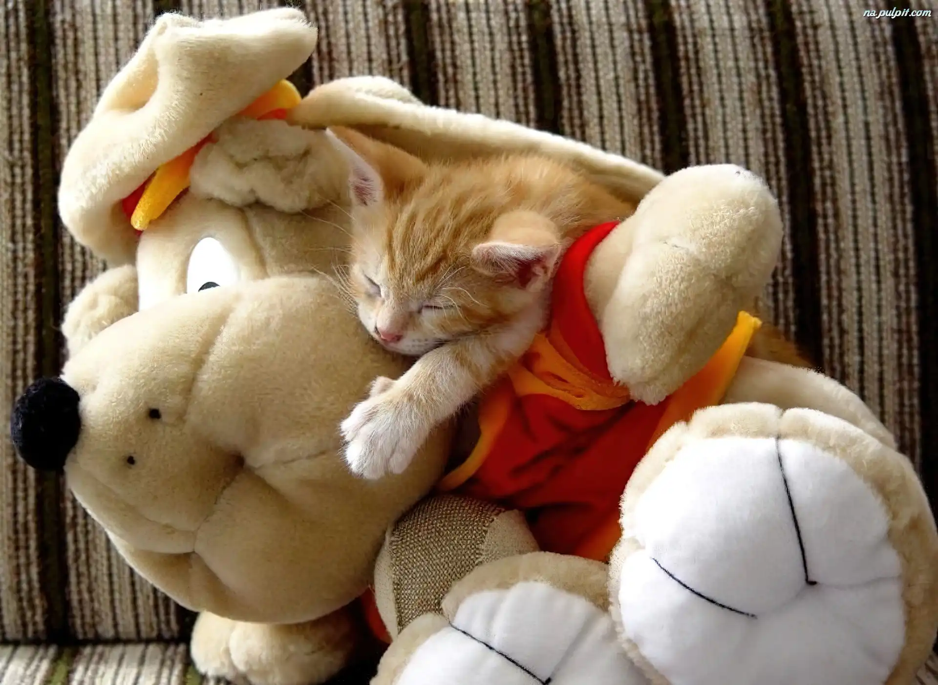 Pies, Kotek, Mały, Pluszowy Na Pulpit