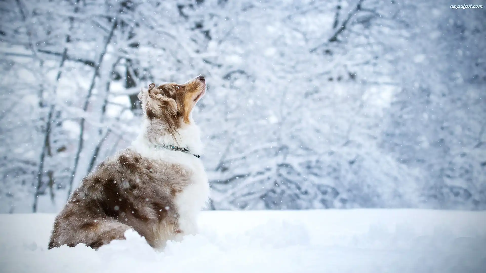 Śnieg, Owczarek australijski, Pies, Drzewa Na Pulpit