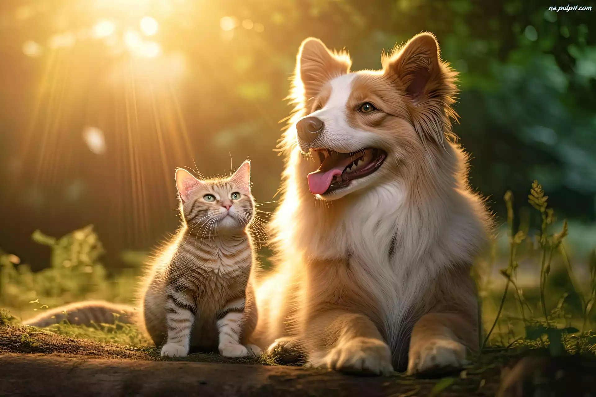 Kot, Pies, Promienie słońca, 2D Na Pulpit