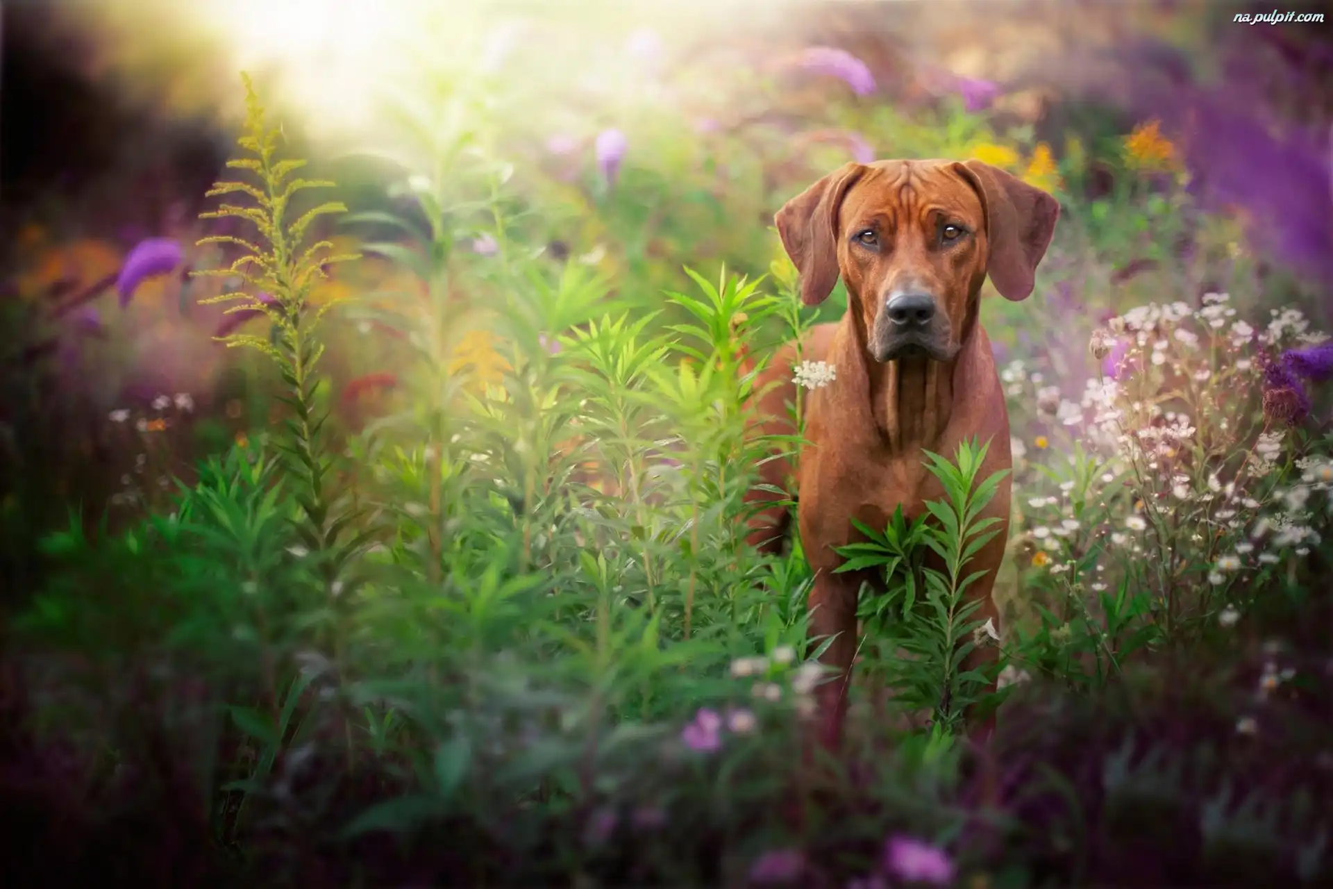 Łąka, Rhodesian ridgeback, Pies, Rośliny
