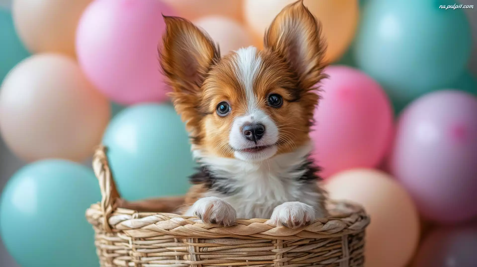 Kolorowe, Pies, Szczeniak, Balony, Koszyk Na Pulpit