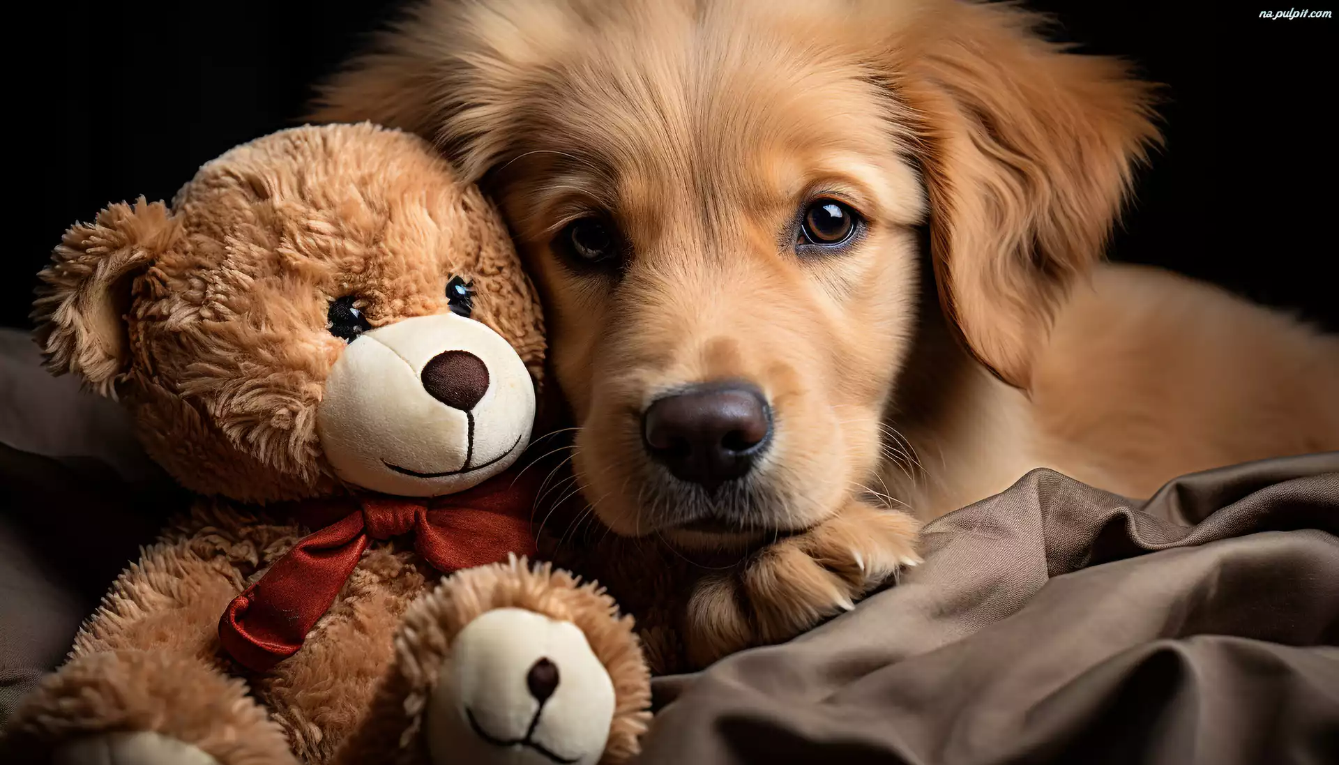 Miś, Pies, Szczeniak, Kokarda, Pluszowy Na Pulpit
