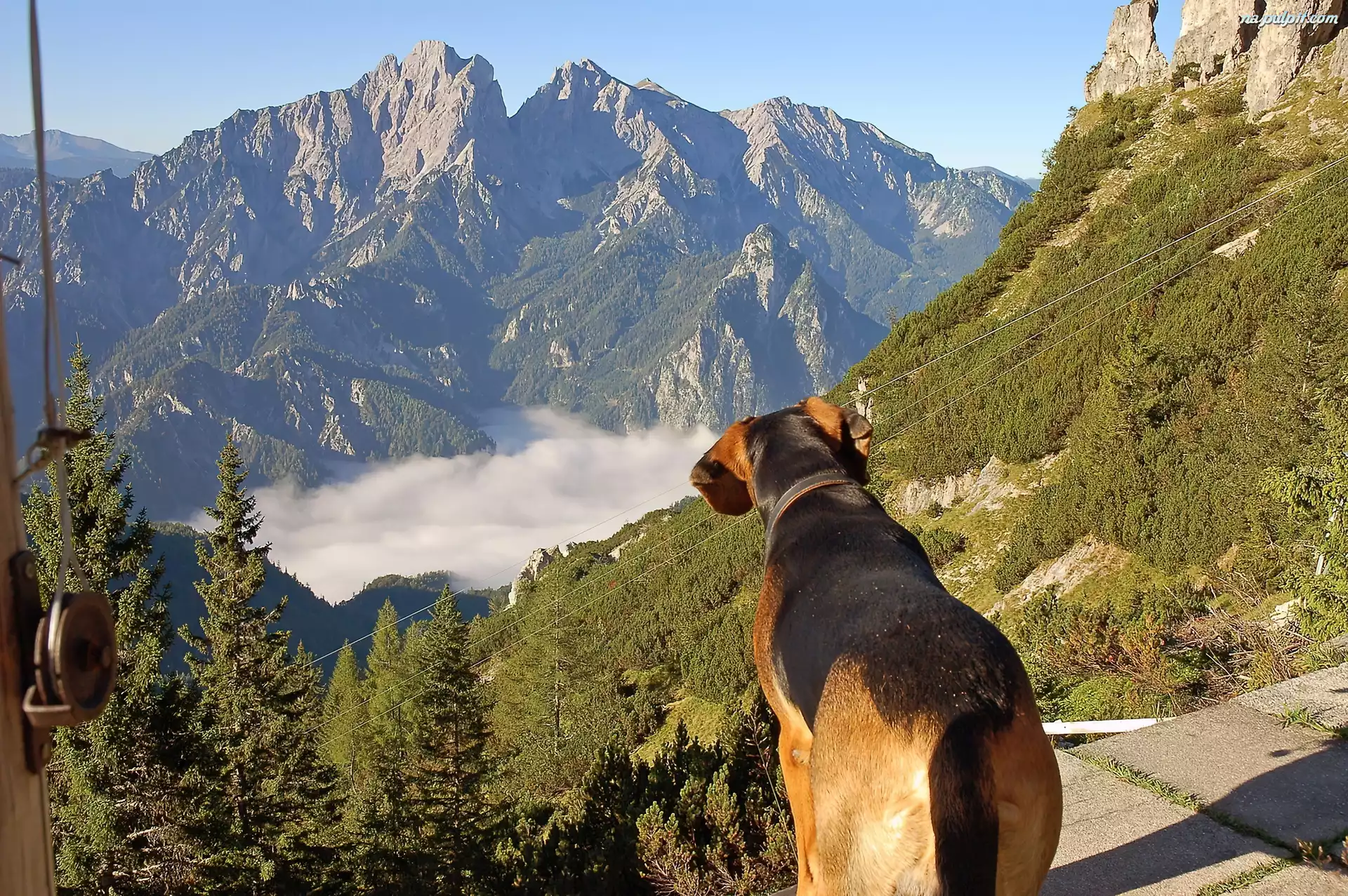Piesek, Mgła, Góry, Drzewa Na Pulpit