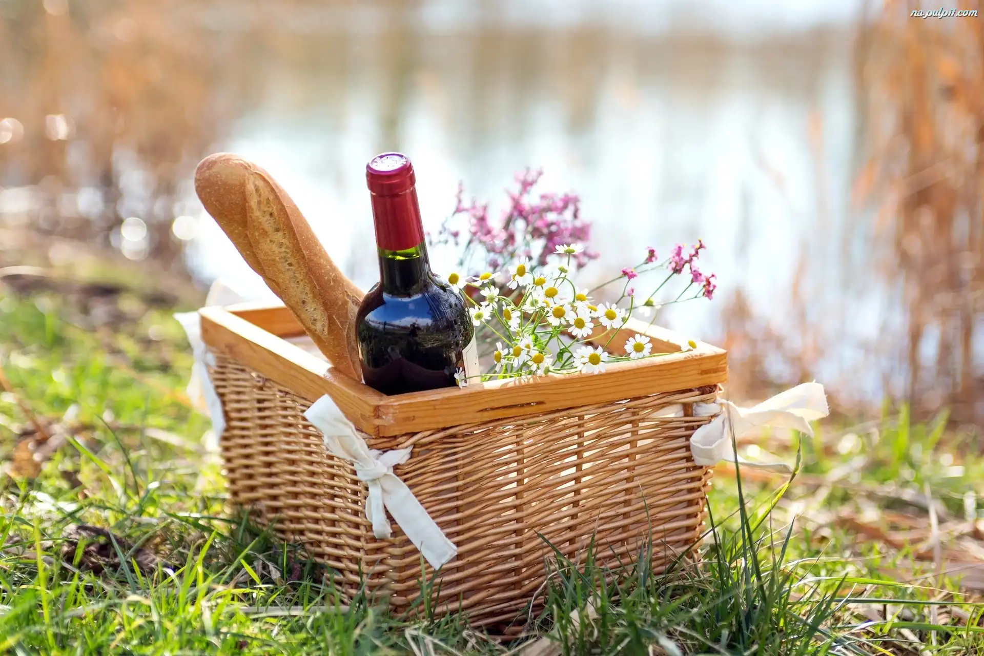 Piknik, Kosz, Wino, Bagietka Na Pulpit