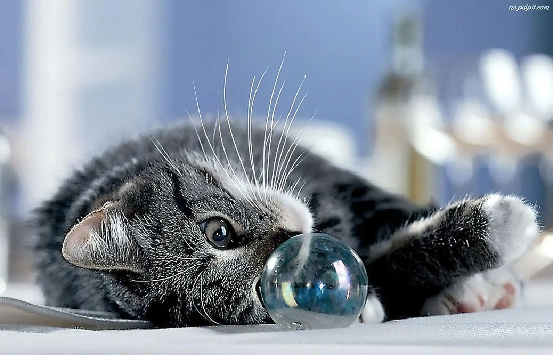 Piłeczka, Zabawa, Kotek, Szary, Przezroczysta Na Pulpit