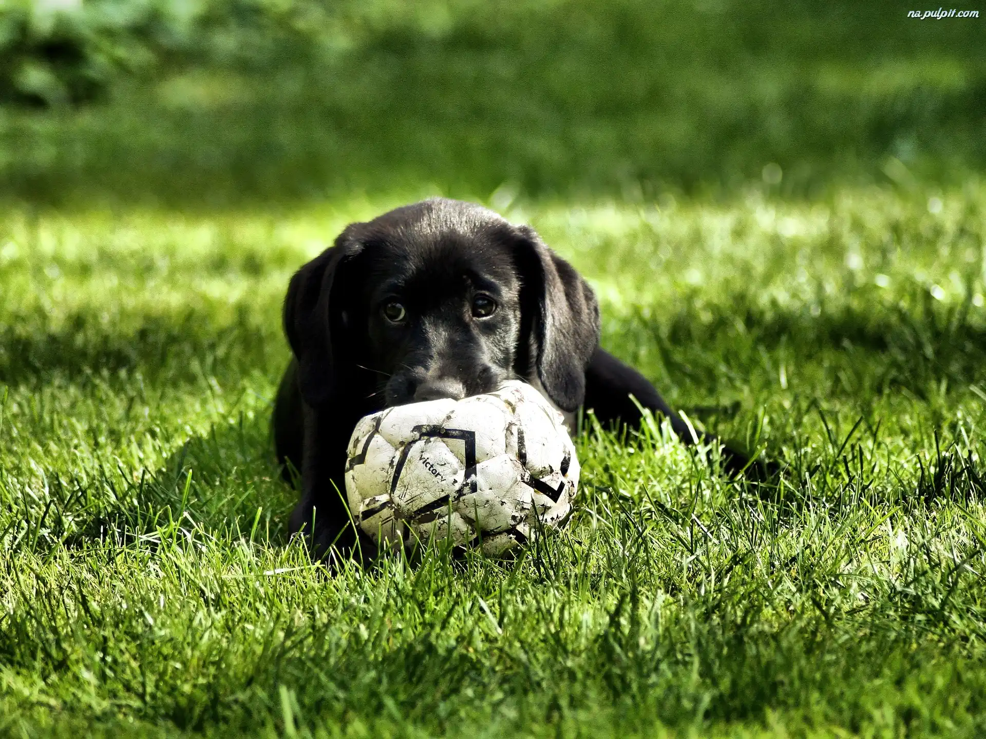 Piłka, Labrador Retriever, Czarny, Szczeniak Na Pulpit