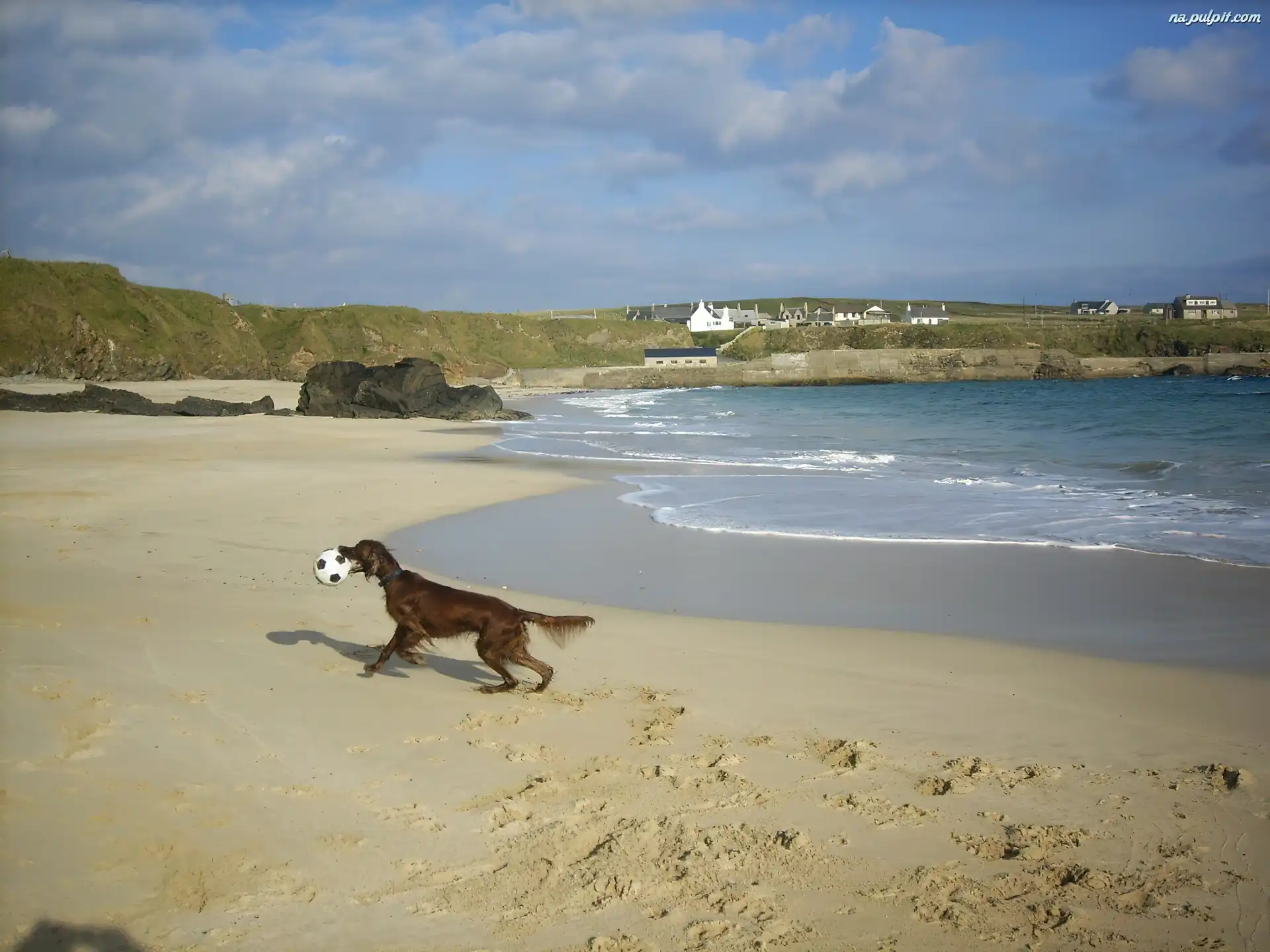 piłka, Seter irlandzki, plaża Na Pulpit