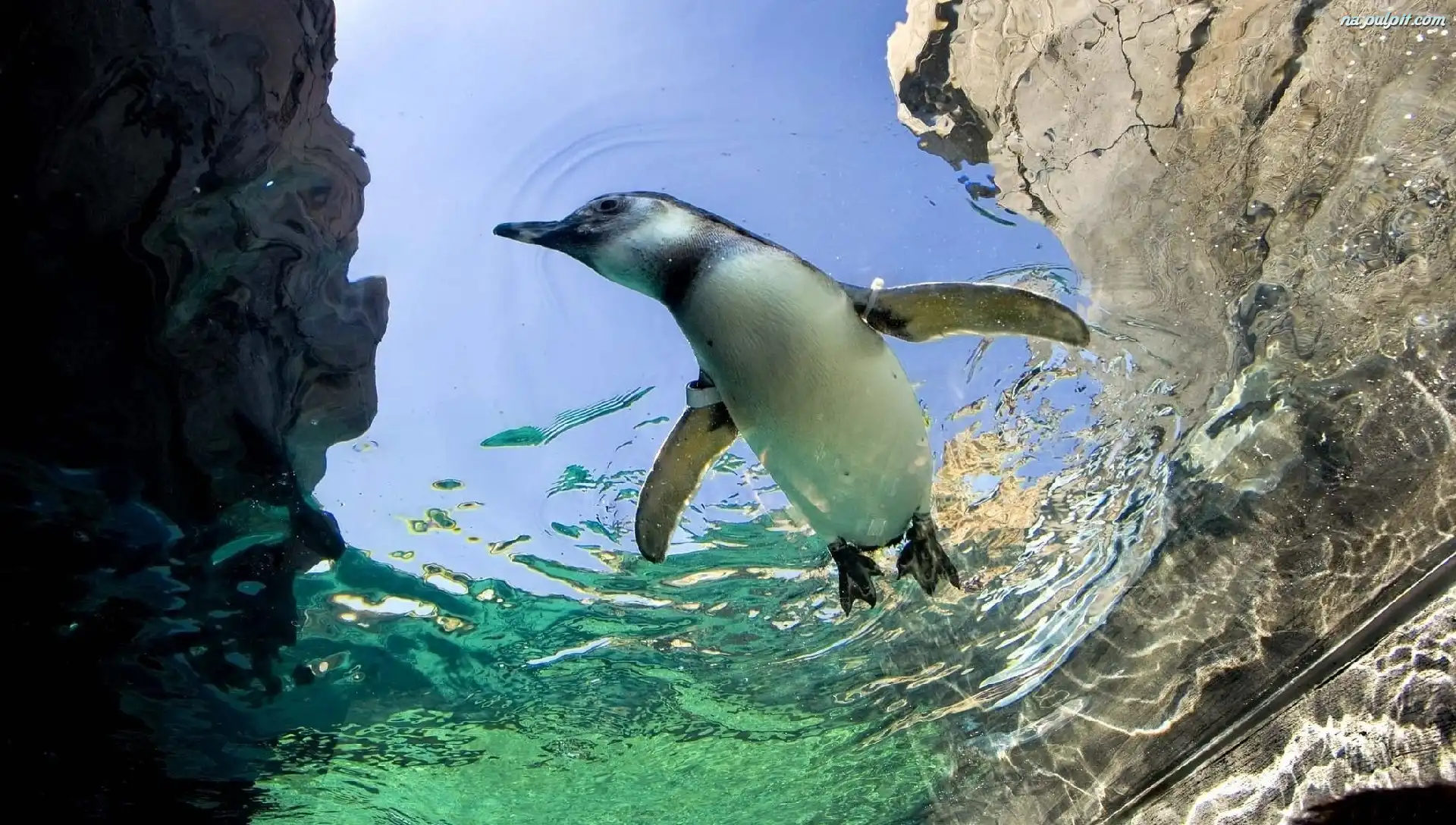 Pingwin, Woda, Czyściutka, Skały Na Pulpit