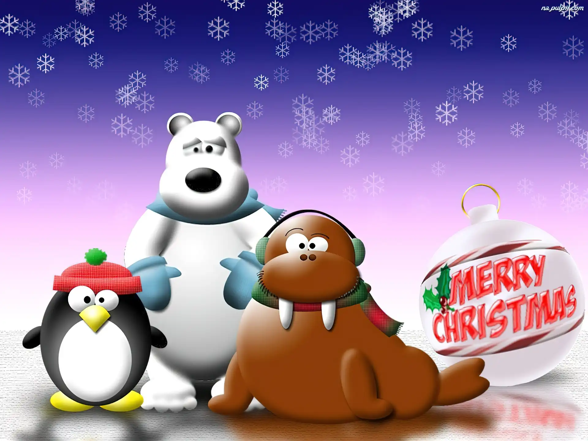 pingwinek, misio , Boże Narodzenie, mors Na Pulpit